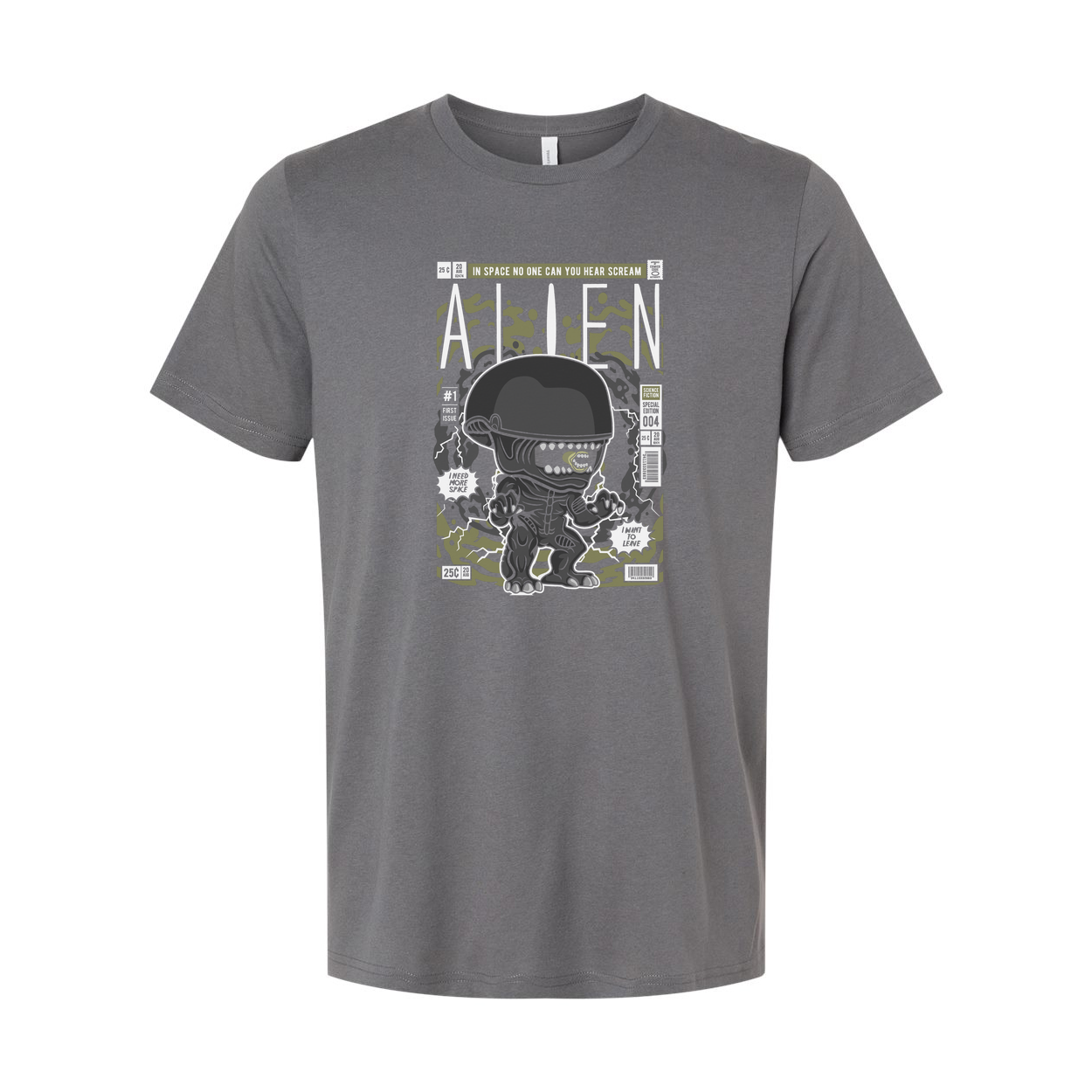 Alien Helmeted Creature Graphic Unisex T Shirt With Futuristic Space Scene Artwork