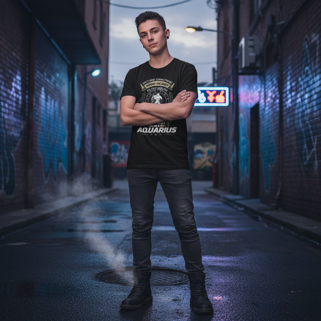 Aquarius Zodiac Unisex Graphic Tee With Crest Emblem And Laurel Wreath Design For Fans