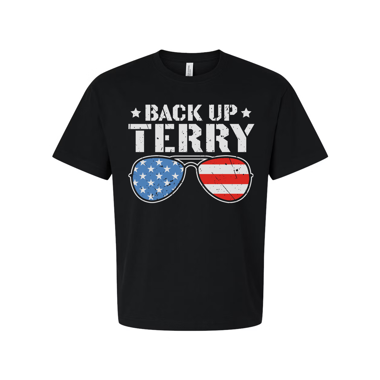 Back Up Terry Unisex American Flag Sunglasses Graphic Tee For Men And Women Everyday Wear