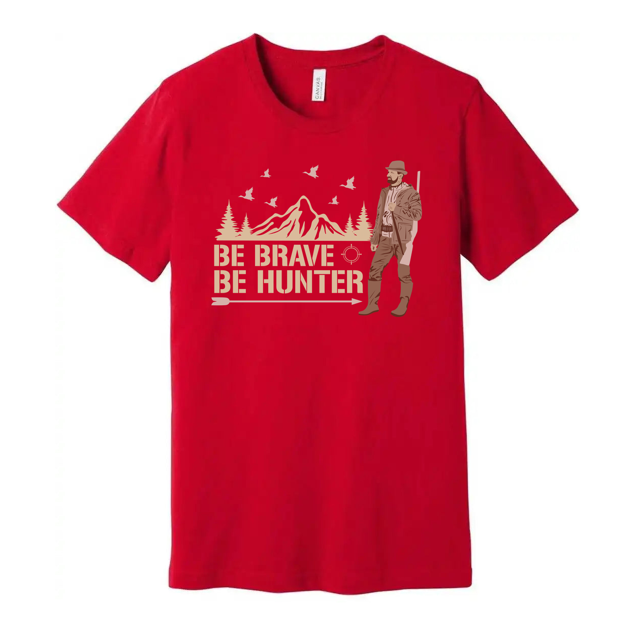 Be Brave Be Hunter Graphic Tee For Hunters Featuring Mountain Landscape, Trees And Hunter Illustration