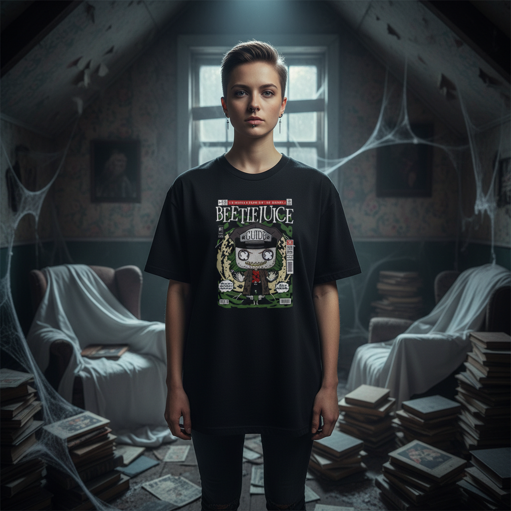 Beetlejuice Graphic Tee With Retro Comic Style Artwork For Horror Movie Fans And Collectors