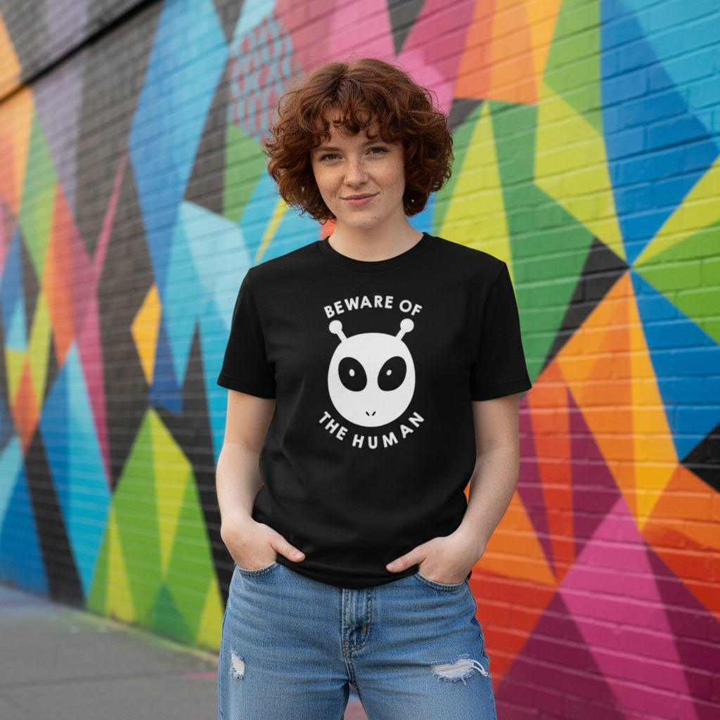 Beware Of The Human Graphic T Shirt Unisex White Cotton Tee Short Sleeve Regular Fit