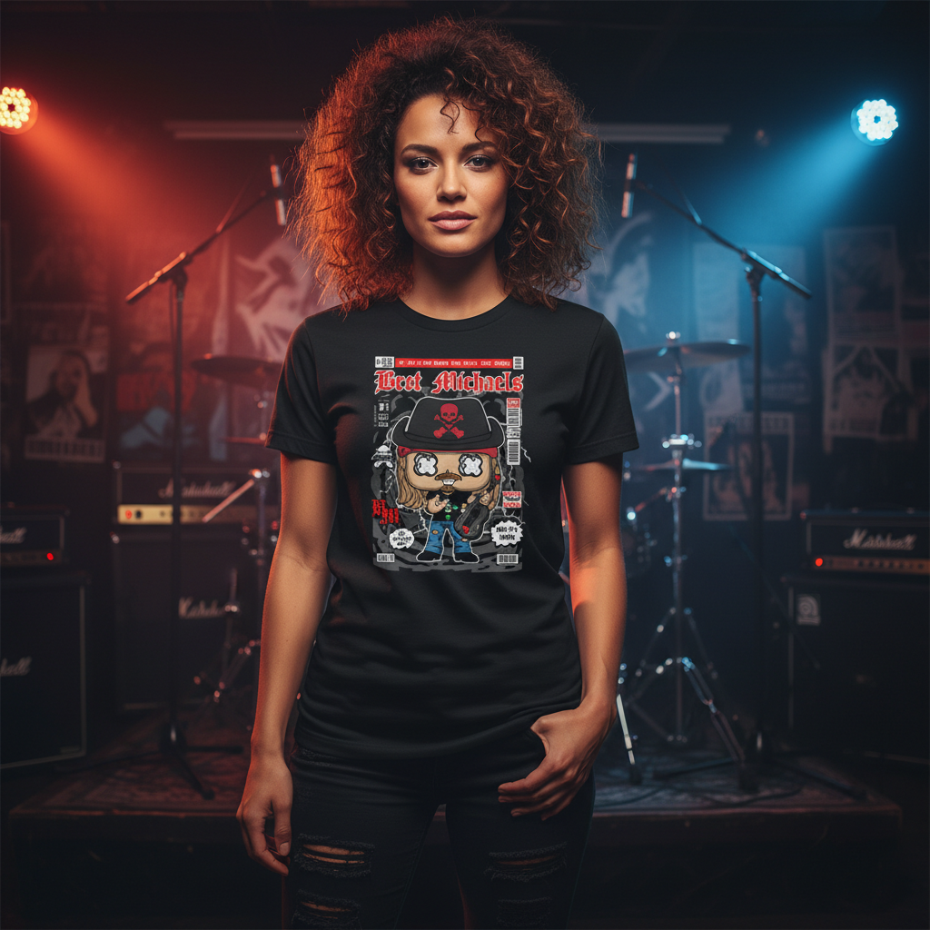 Bret Michaels Unisex Cartoon Band T Shirt Featuring Graphic Rockstar Portrait And Retro Style