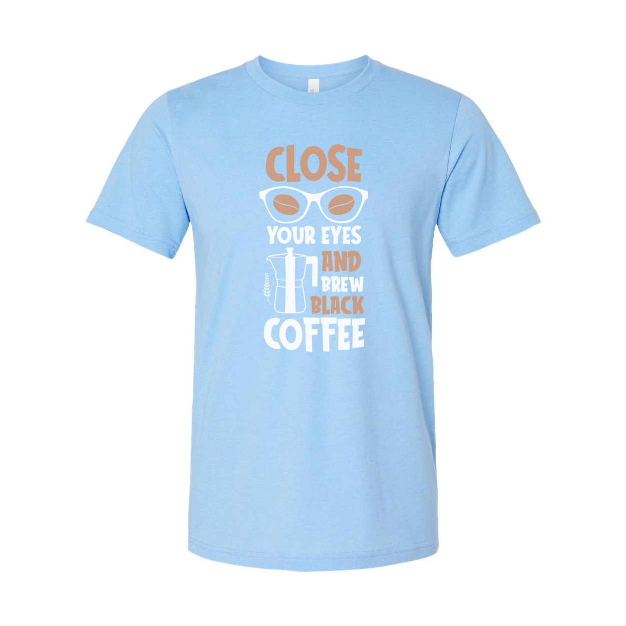 Close Your Eyes And Brew Coffee Unisex Graphic Tee For Coffee Lovers And Morning Rituals