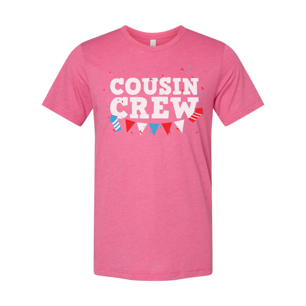 Cousin Crew Graphic T Shirt With Red And Blue Banner Confetti Design For Family Celebration