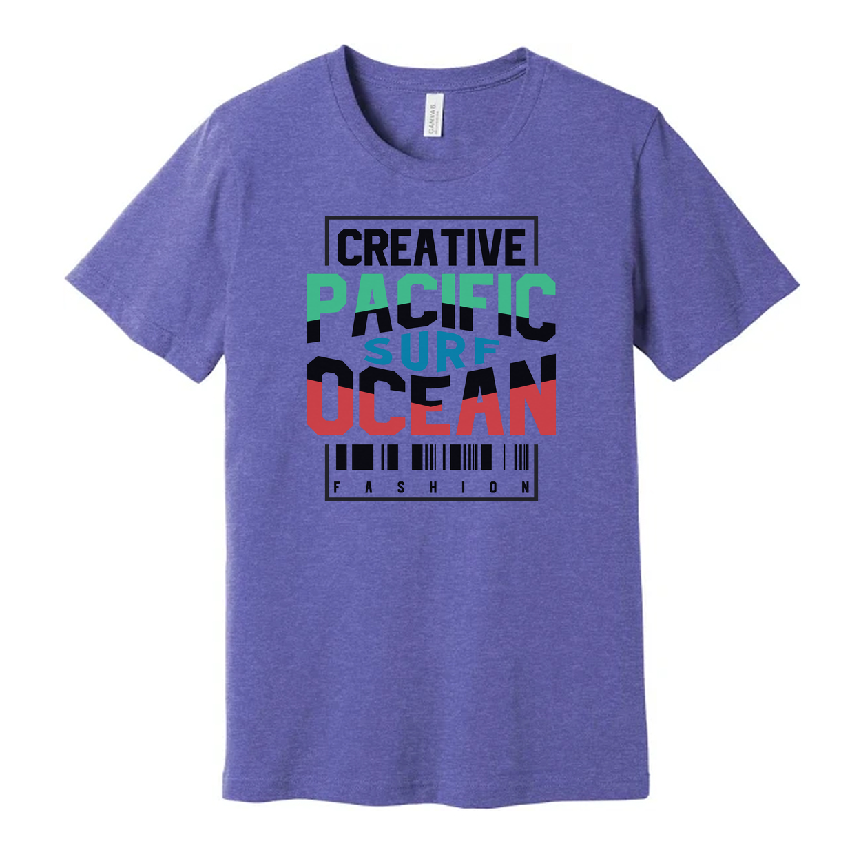Creative Pacific Ocean Surf Graphic Unisex T Shirt with Barcode Fashion Print Collection