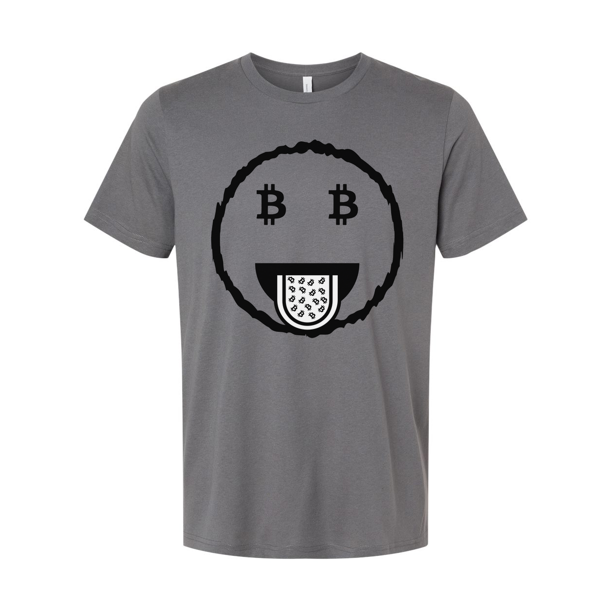 Crypto Bitcoin Emoji Face Graphic T Shirt For Unisex Wear With Bitcoin Motif Illustration Tee