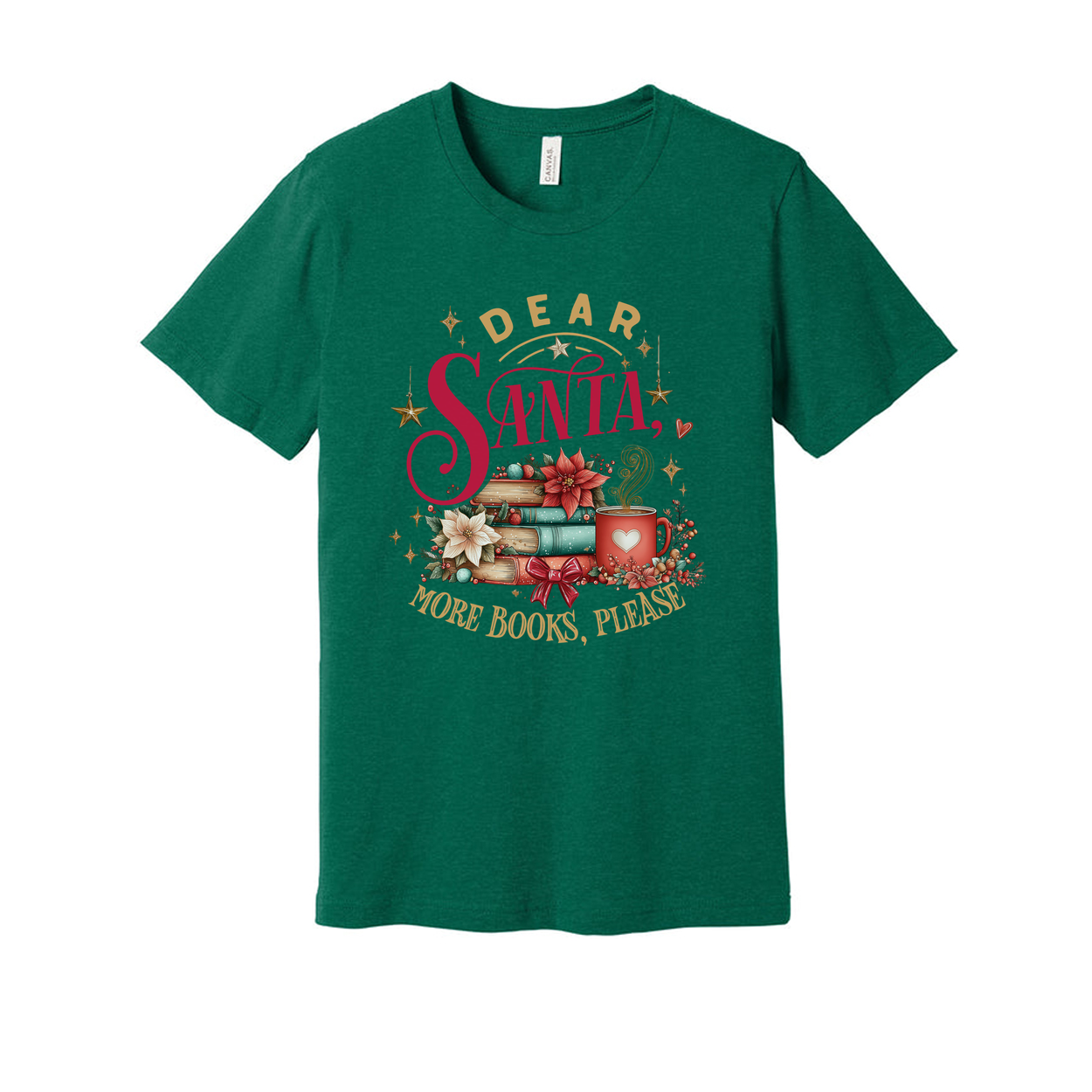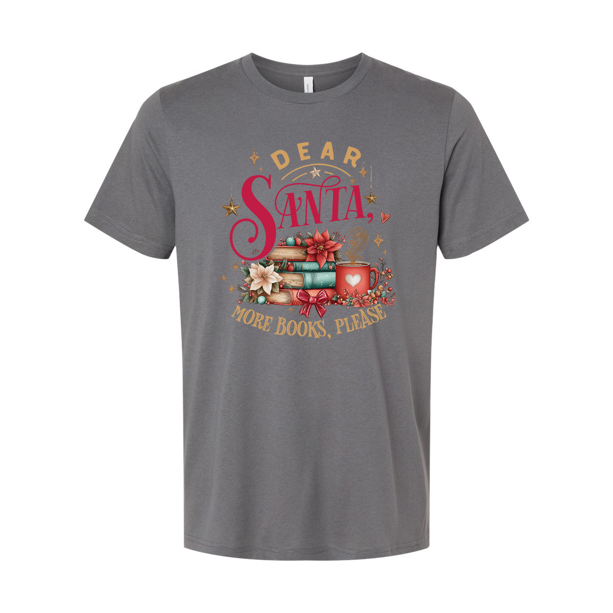 Dear Santa Please Bring More Books Unisex Christmas Graphic T Shirt For Readers Everywhere