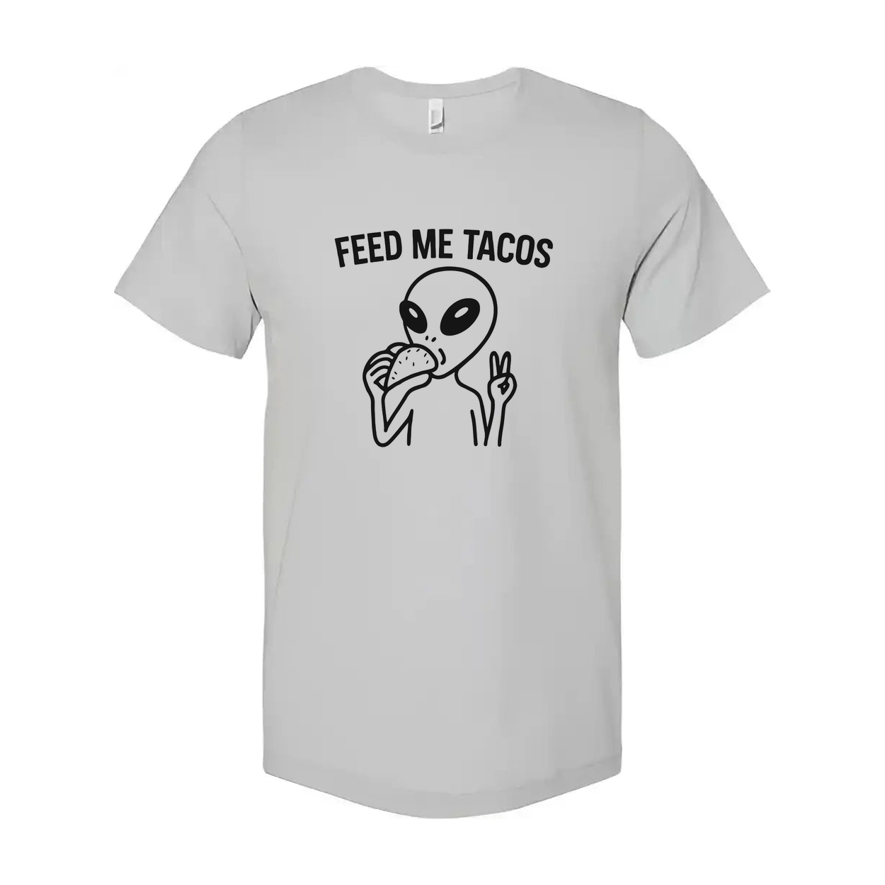 Feed Me Tacos Alien Graphic T Shirt Unisex Tee With Taco Eating Illustration Design