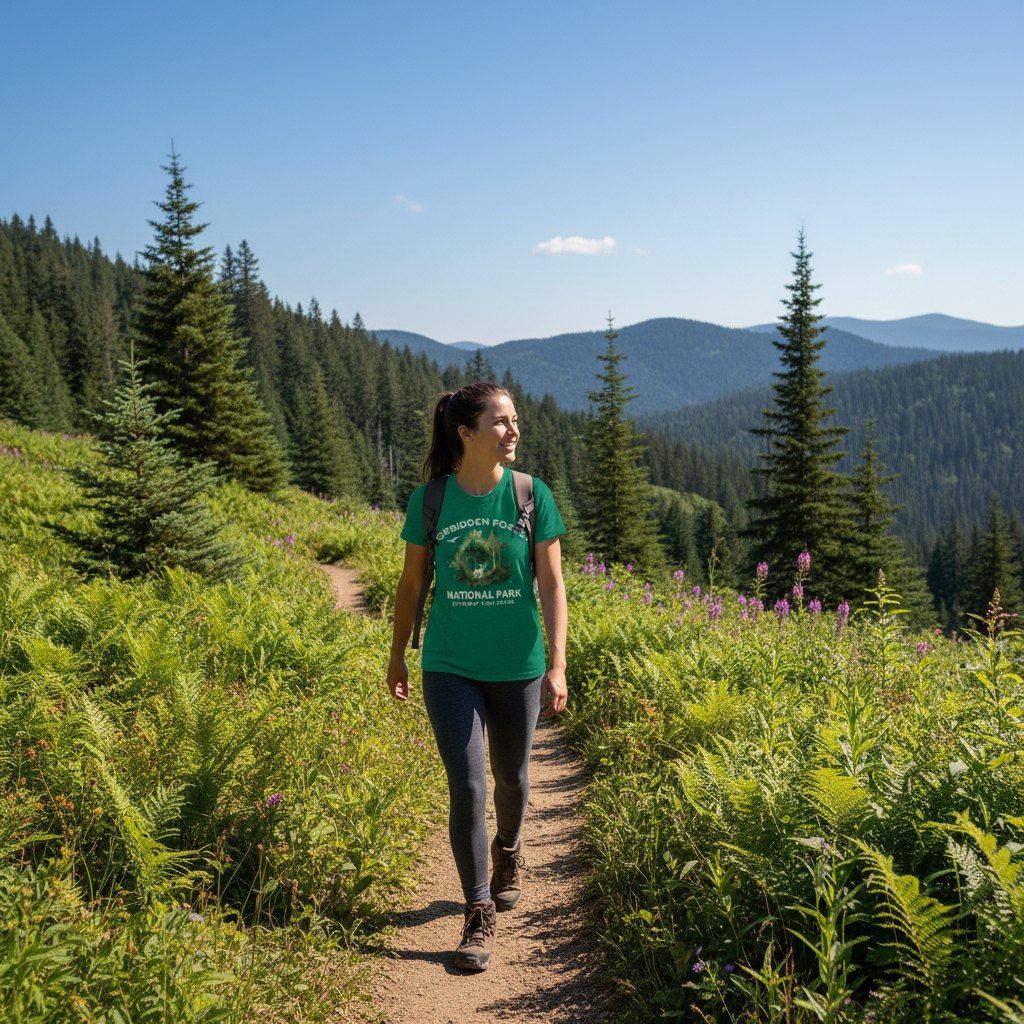 This graphic tee lets you wear your love for the outdoors in a comfortable, low-effort way. It pairs well with jeans, shorts, or jackets for day trips, hikes, or city strolls, making it a reliable option for nature lovers and park enthusiasts. The design acts as a conversation starter while keeping your style relaxed and approachable, so you can express your connection to the forest and national parks wherever you go.