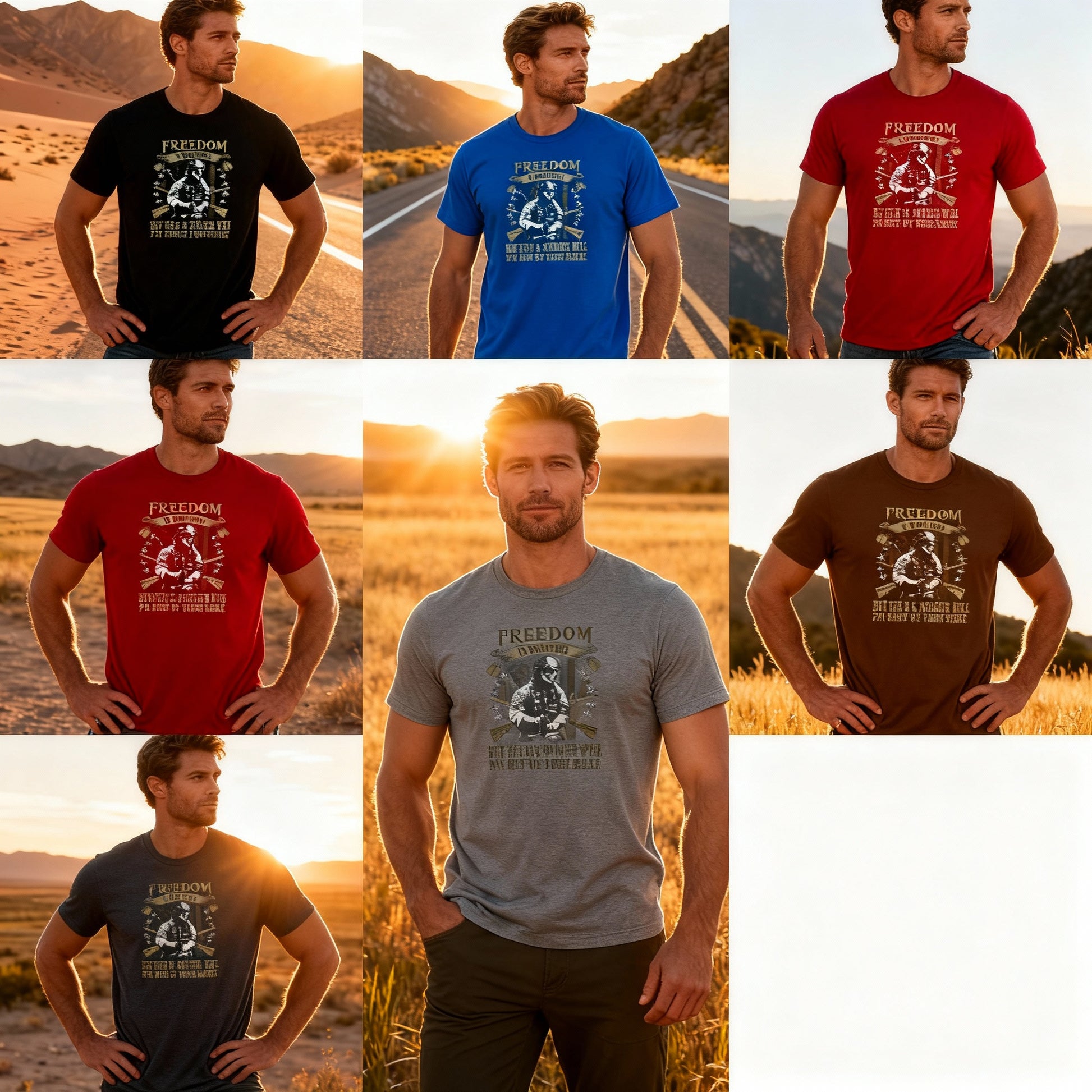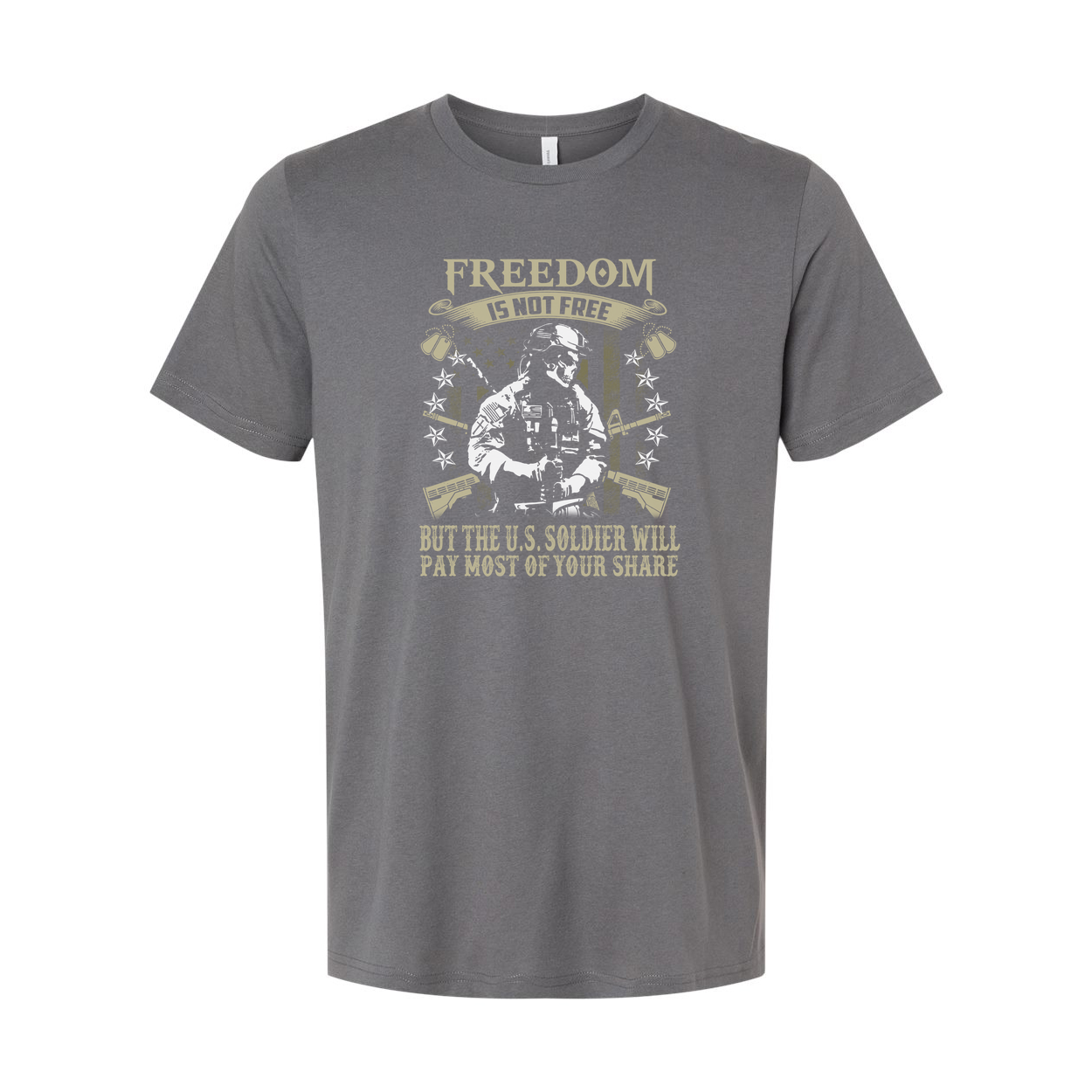 Freedom Is Not Free Veterans Unisex Graphic Tee With Soldier Emblem And Stars Design For Adults