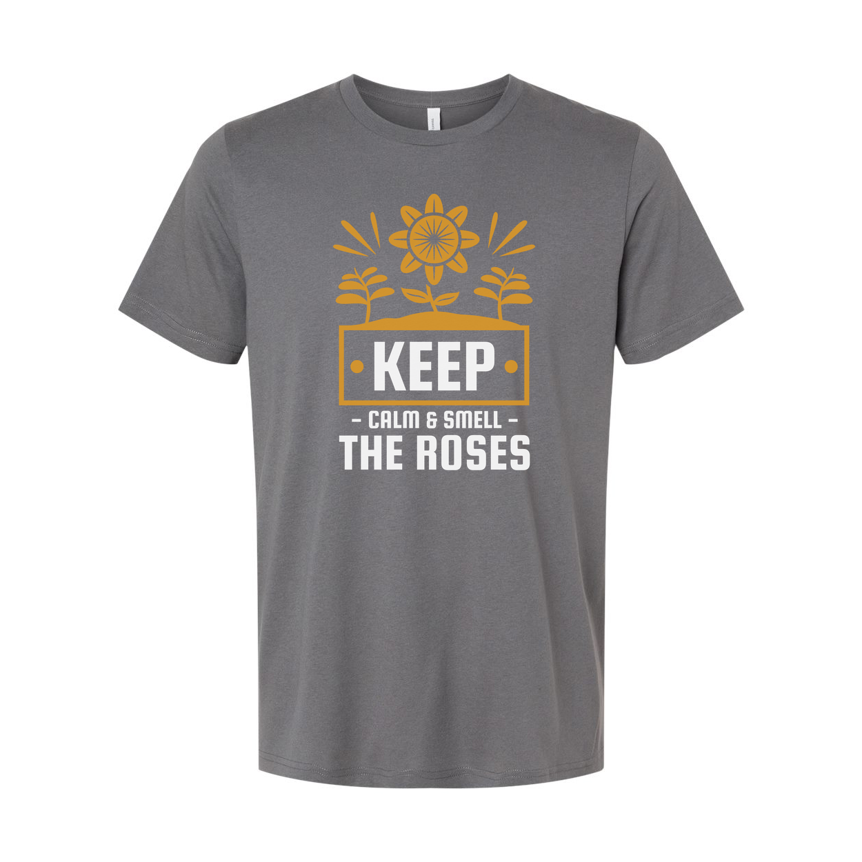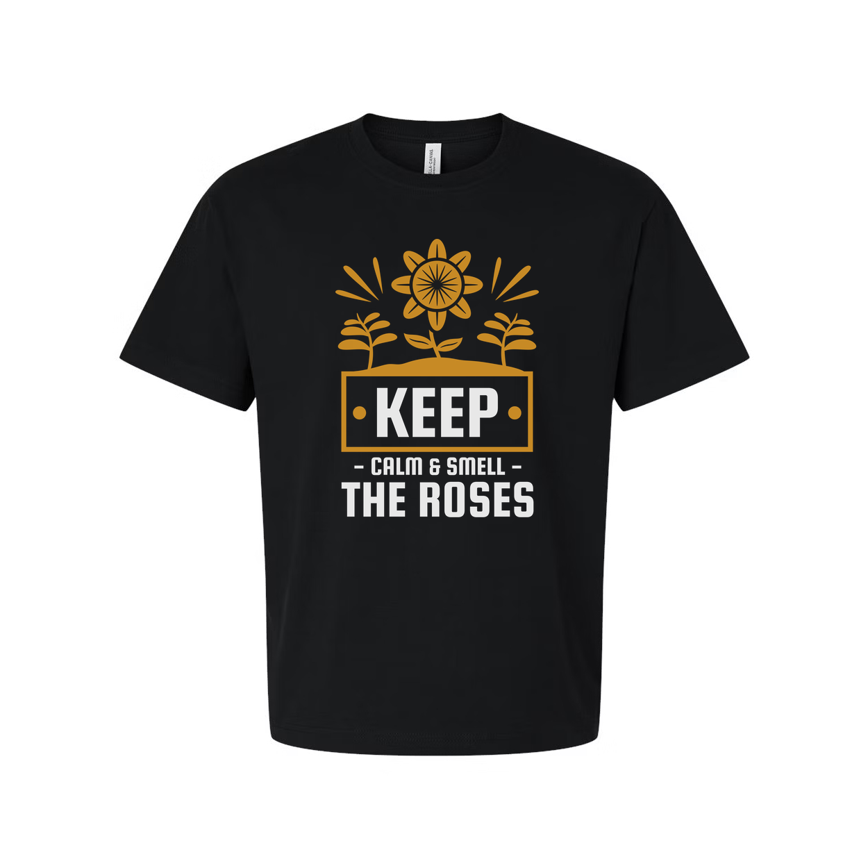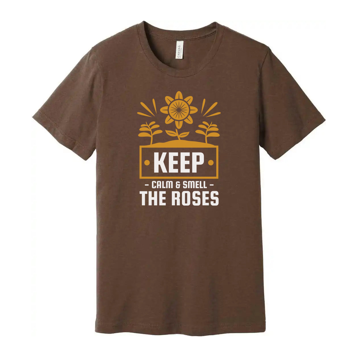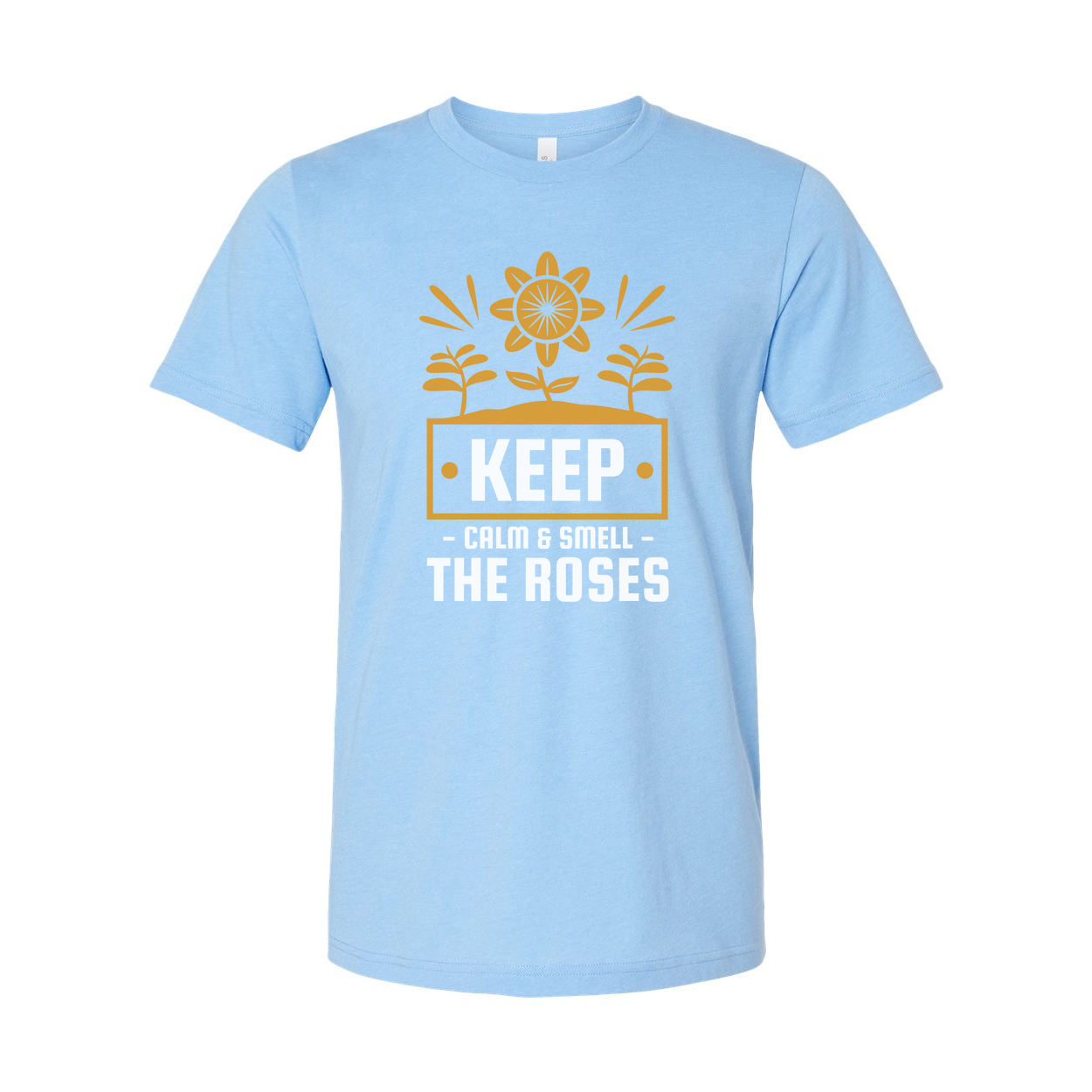 Unisex Gardening T Shirt With Keep Calm And Smell The Roses Sunflower Floral Graphic