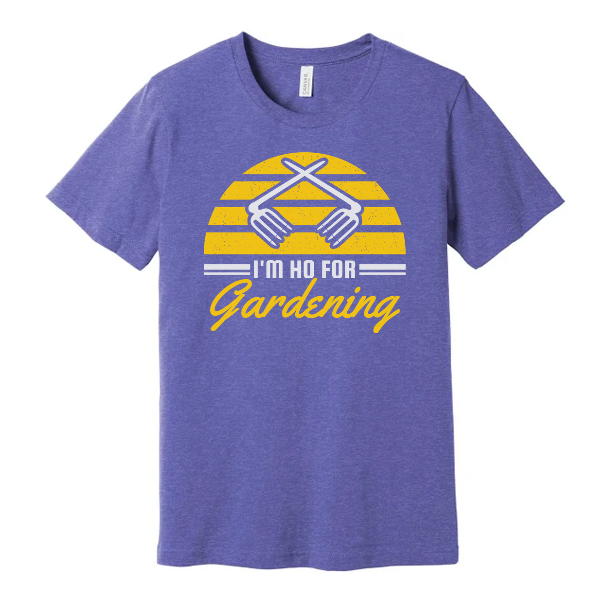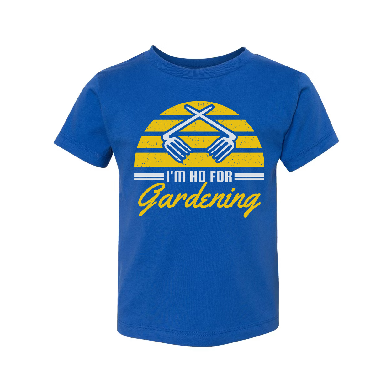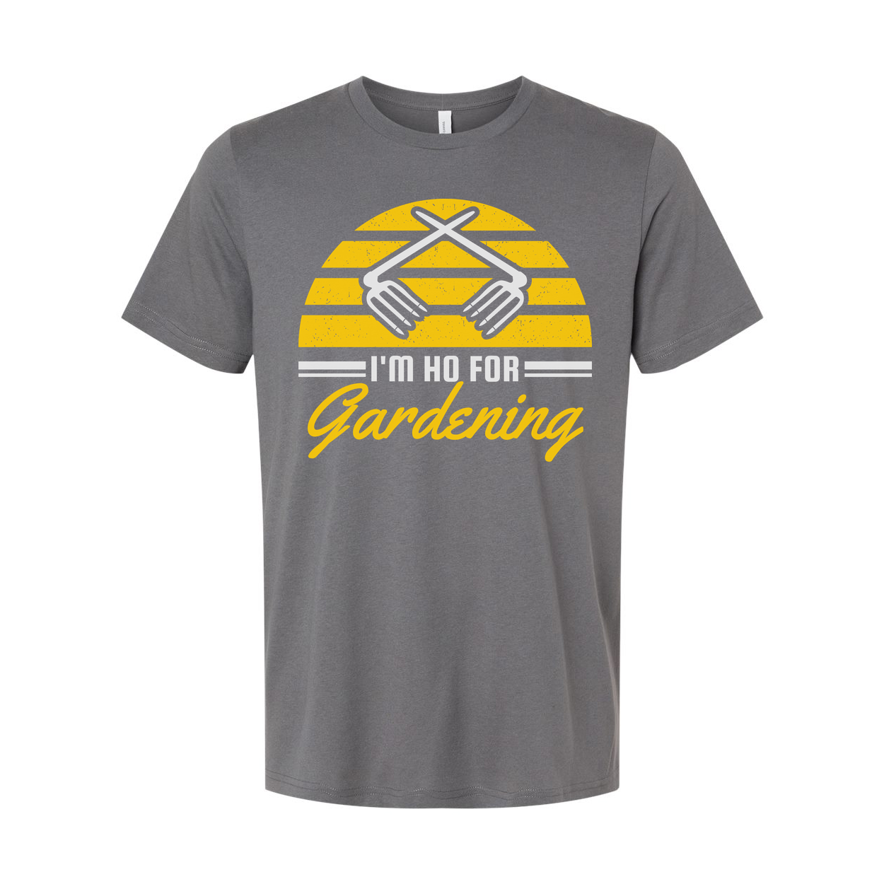 Unisex Gardening Graphic T Shirt With Yellow Sunburst Stripes And Clasped Hands Icon And Gardening Script
