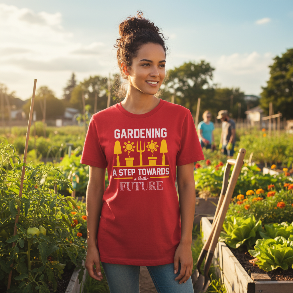 Gardening Motivational Unisex T Shirt With Sunflower Pots And Garden Tools Graphic