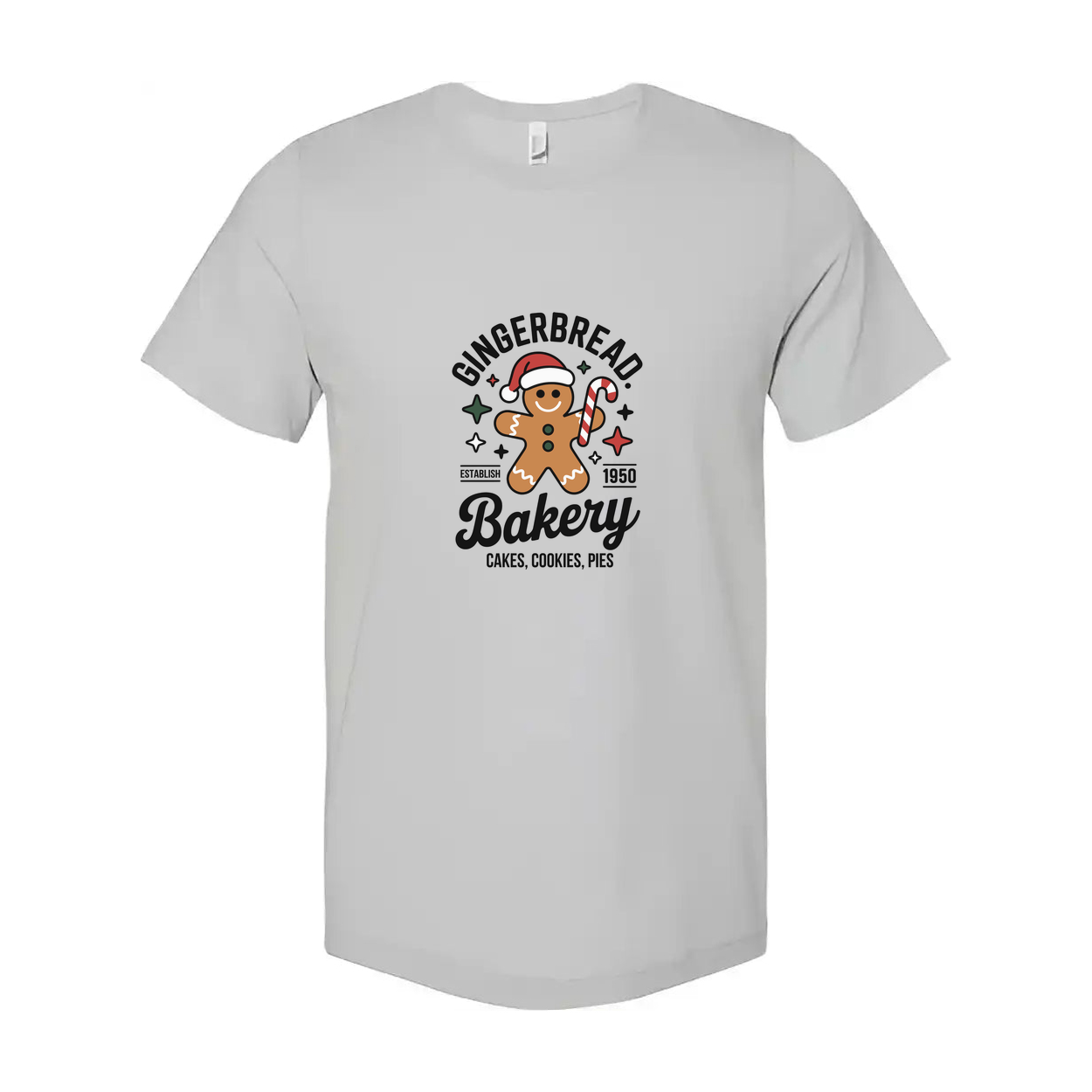 Gingerbread Bakery Christmas Unisex T Shirt Featuring Santa Gingerbread Man Design