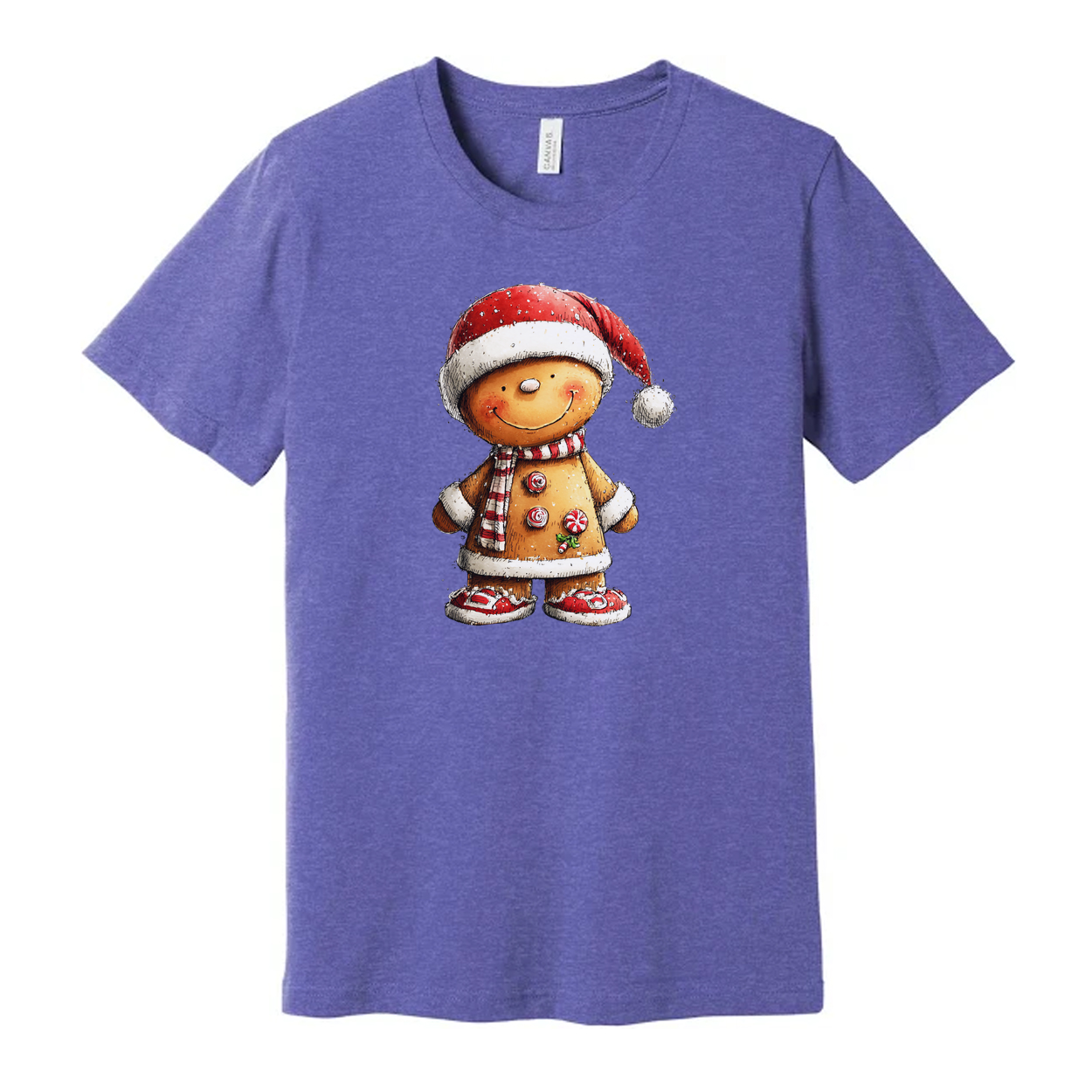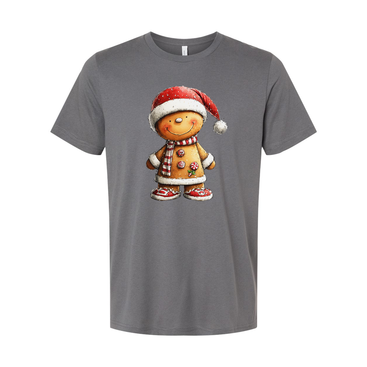 Gingerbread Man Christmas T Shirt With Santa Hat And Candy Cane Details Unisex Tee