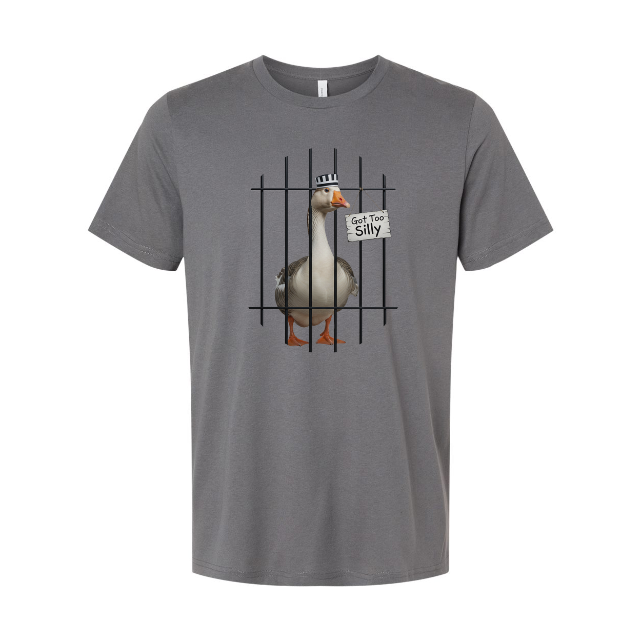 Got Too Silly Unisex T Shirt is a playful graphic tee designed for everyday wear. The bold illustration—a charming goose behind bars holding a sign that reads “Got Too Silly”—adds a lighthearted vibe to casual outfits, making it a go-to piece for relaxed days, weekends, and laid-back outings. This unisex tee pairs effortlessly with jeans, shorts, or lounge pants, so you can express your playful side while staying comfortable.