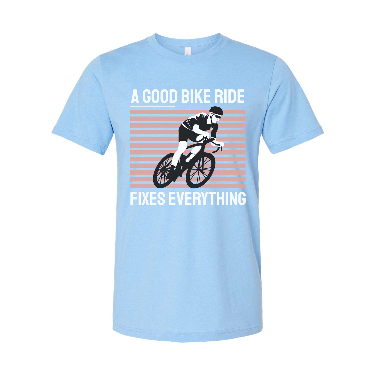 Graphic Cycling Tee With Retro Striped Background And Rider In Motion Illustration