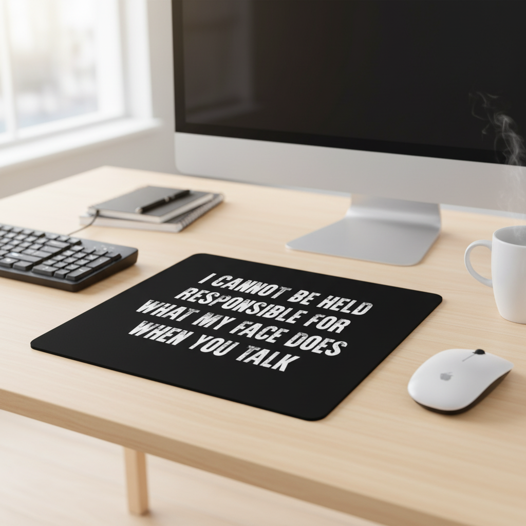 Add a touch of personality to your workspace with the I Cannot Be Held Responsible For What My Face Does When You Talk Thick Mouse Pad. This bold, black desk accessory brings a playful vibe to any setup while offering a reliable surface for daily tasks.