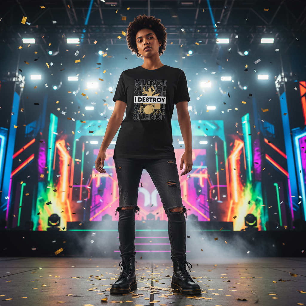 I Destroy Silence Drummer Graphic T Shirt Unisex Casual Short Sleeve Studio Apparel Gift
