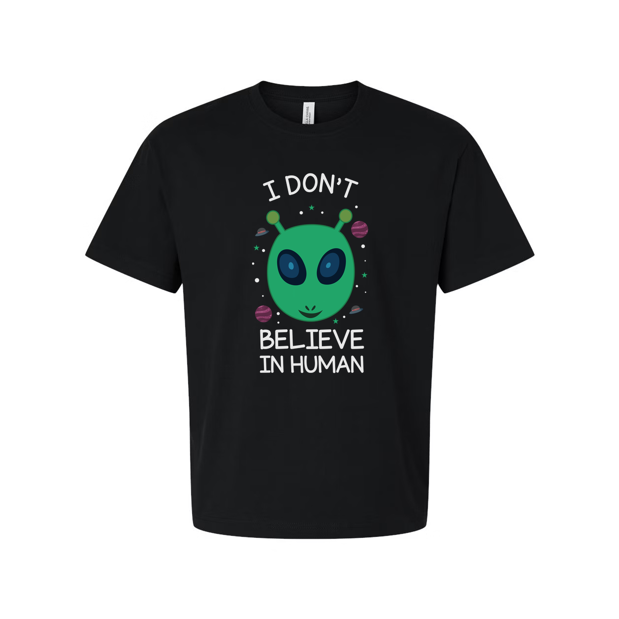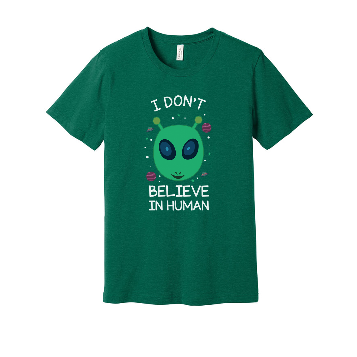I Don't Believe in Human Alien Graphic T Shirt for Unisex Adults Short Sleeve Casual Tee