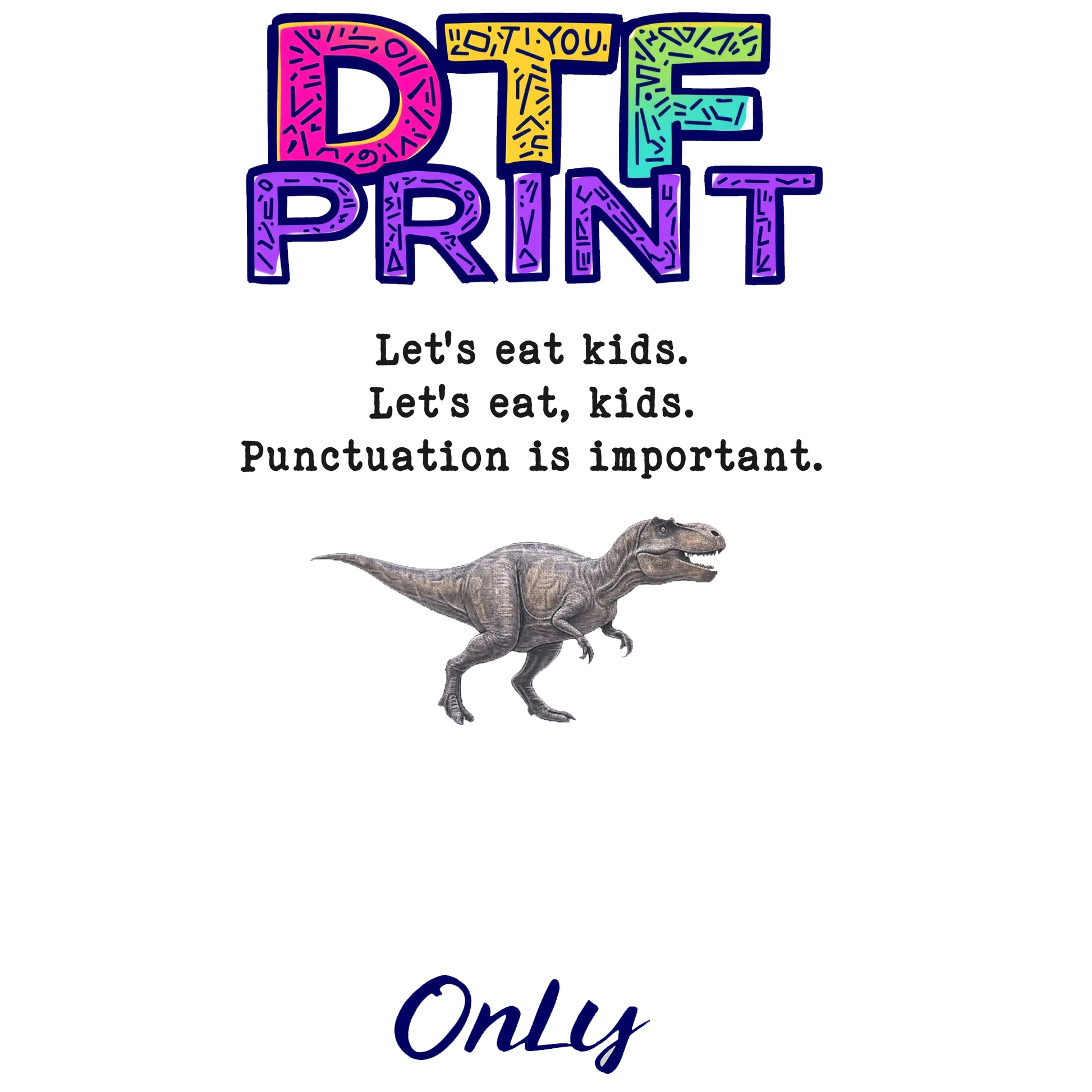 Make punctuation fun and comfortable with the Lets Eat Kids Punctuation Is Important Unisex T Shirt. This playful tee celebrates the power of punctuation with a nod to the classic joke, reminding everyone that proper punctuation matters with a touch of whimsy—a friendly dinosaur illustration sits beneath the bold typography on a classic white tee.