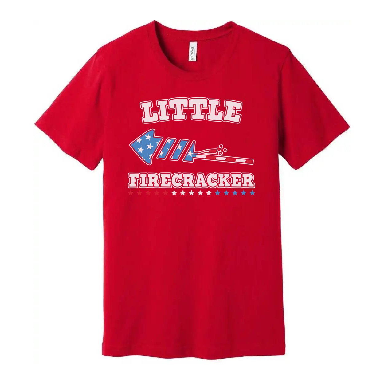 Little Firecracker Patriotic Graphic T Shirt With Stars And Stripes Rocket Design For Unisex