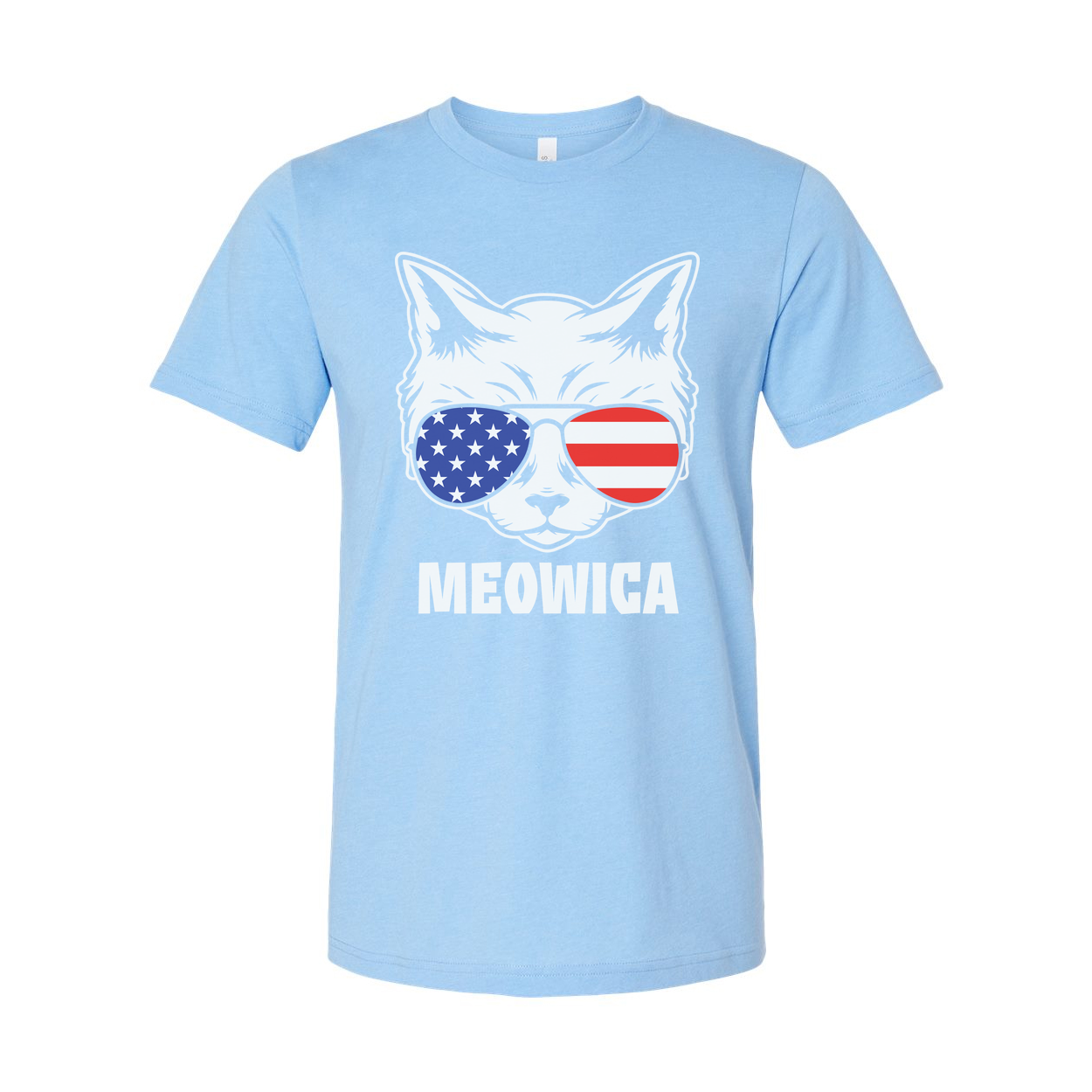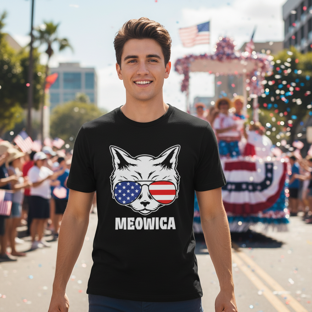 Meowica American Flag Sunglasses Cat Graphic Unisex Short Sleeve Tee With Bold Print