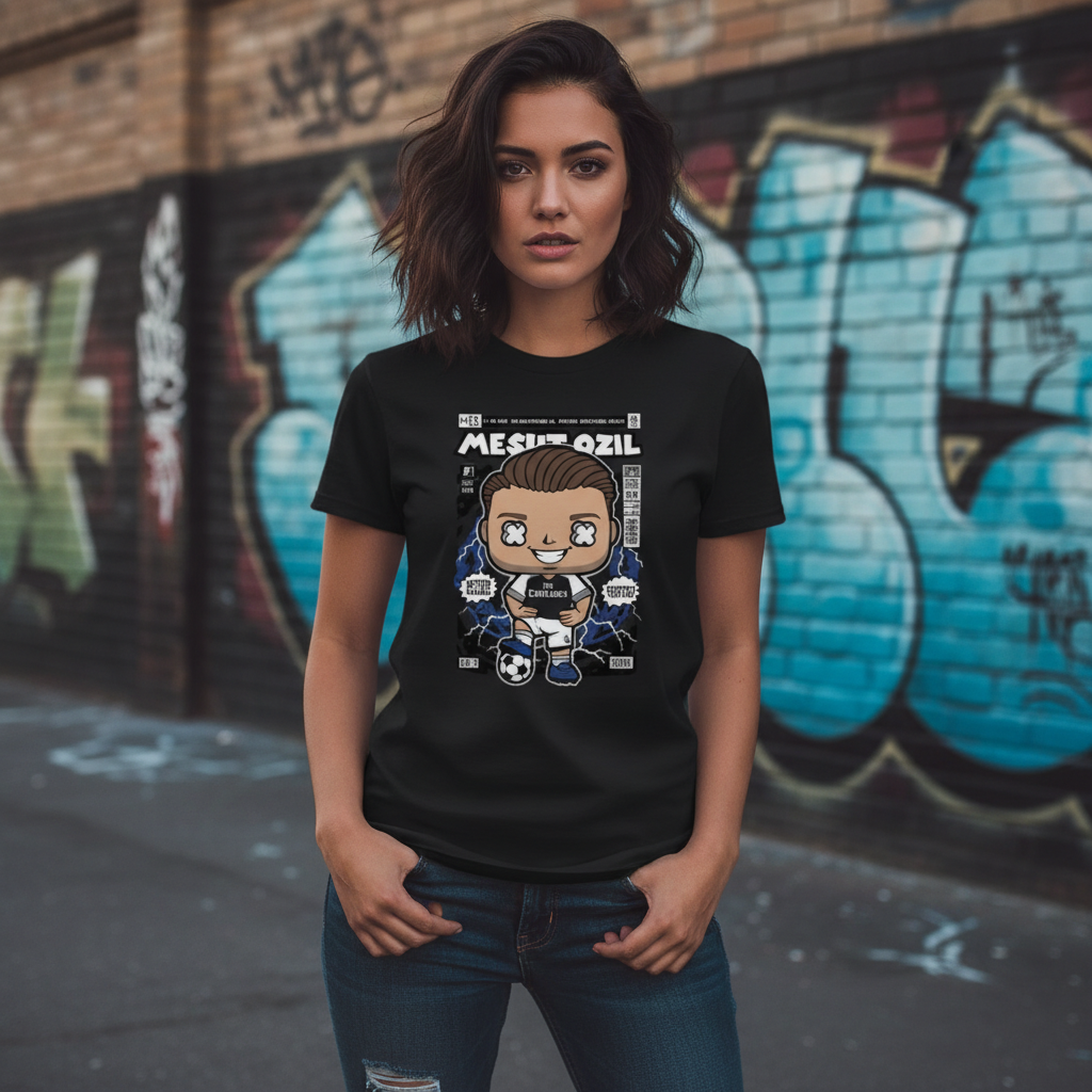 Mesut Ozil Cartoon Soccer Legend Unisex Graphic Tee With Vibrant Front Print Football Theme