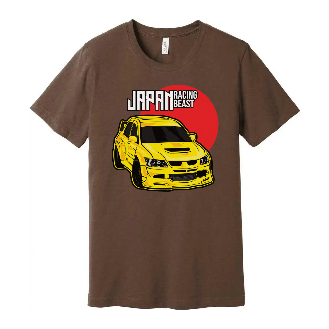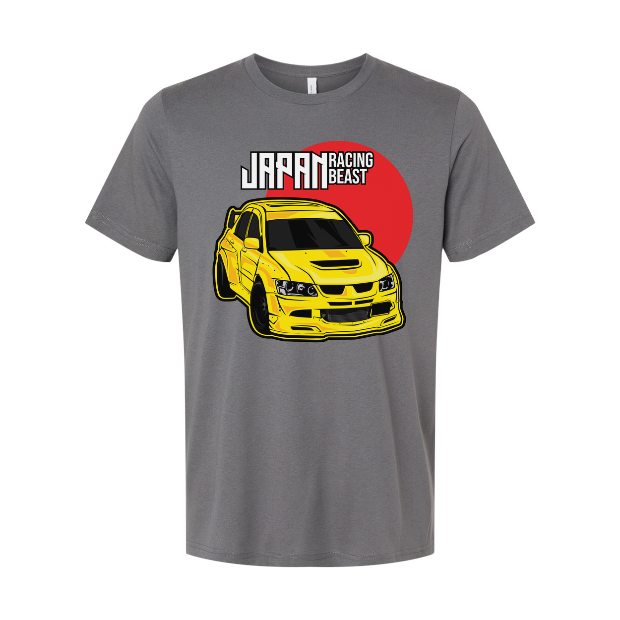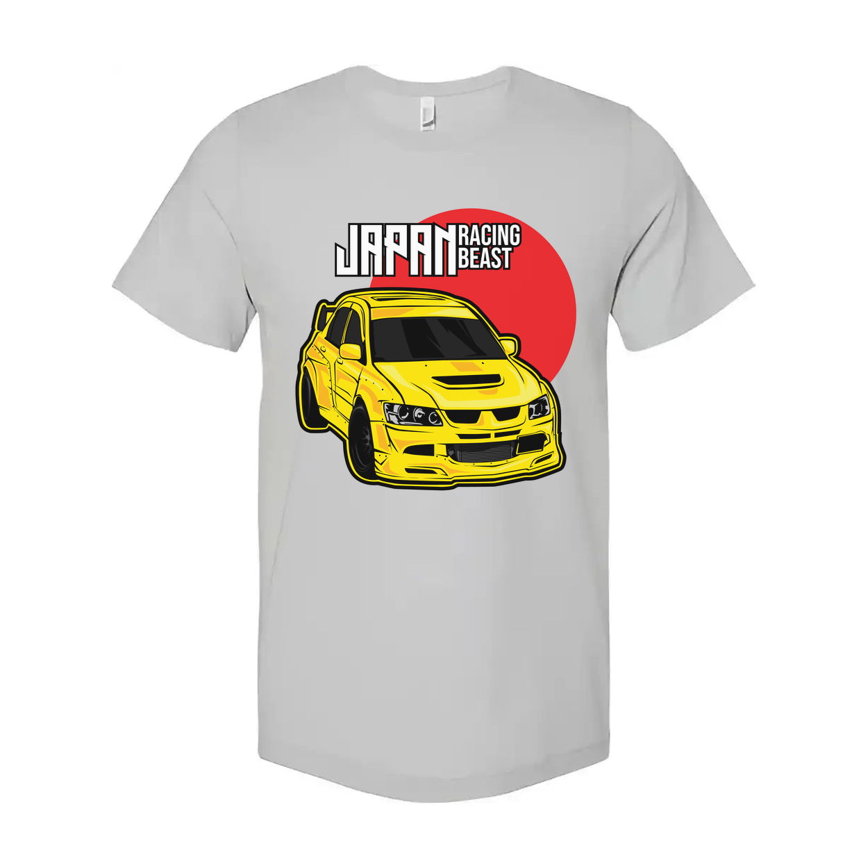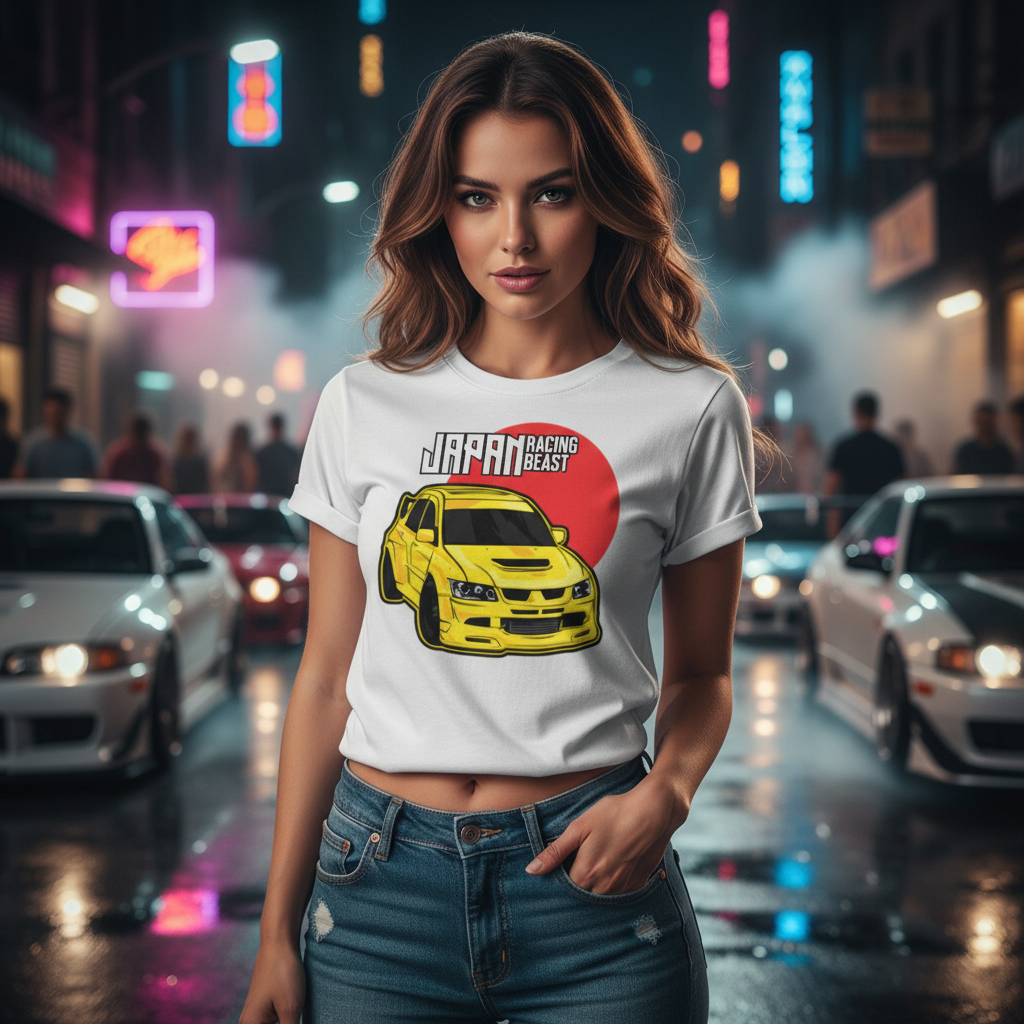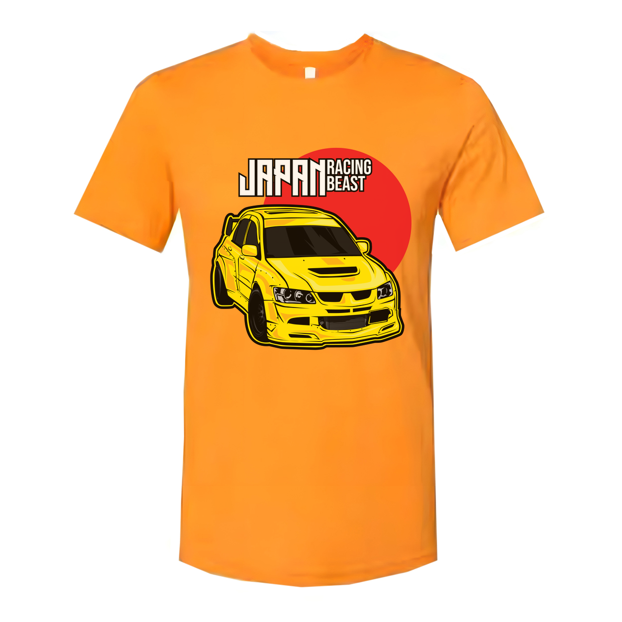 Mitsubishi Lancer Evolution IX Unisex T Shirt With Yellow Racing Car Graphic And Japan Racing Beast Logo