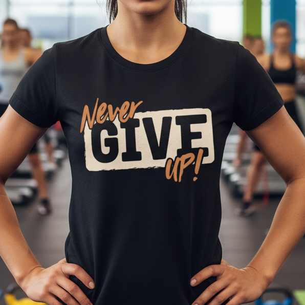 Never Give Up Graphic T Shirt Unisex Short Sleeve Tee With Motivational Quote Design