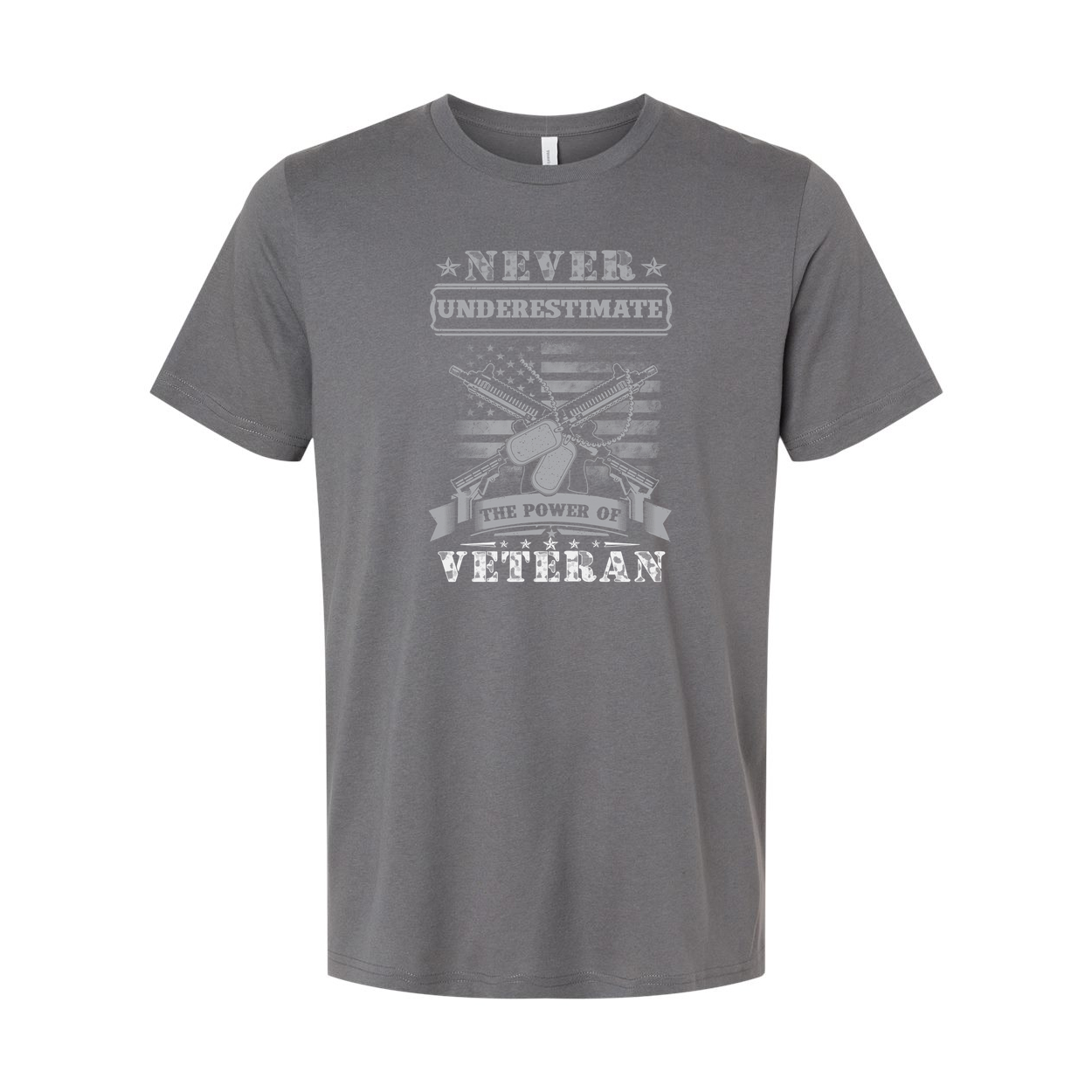 Never Underestimate The Power Of Veteran Unisex Graphic Tee With Patriotic Military Theme Design Edition