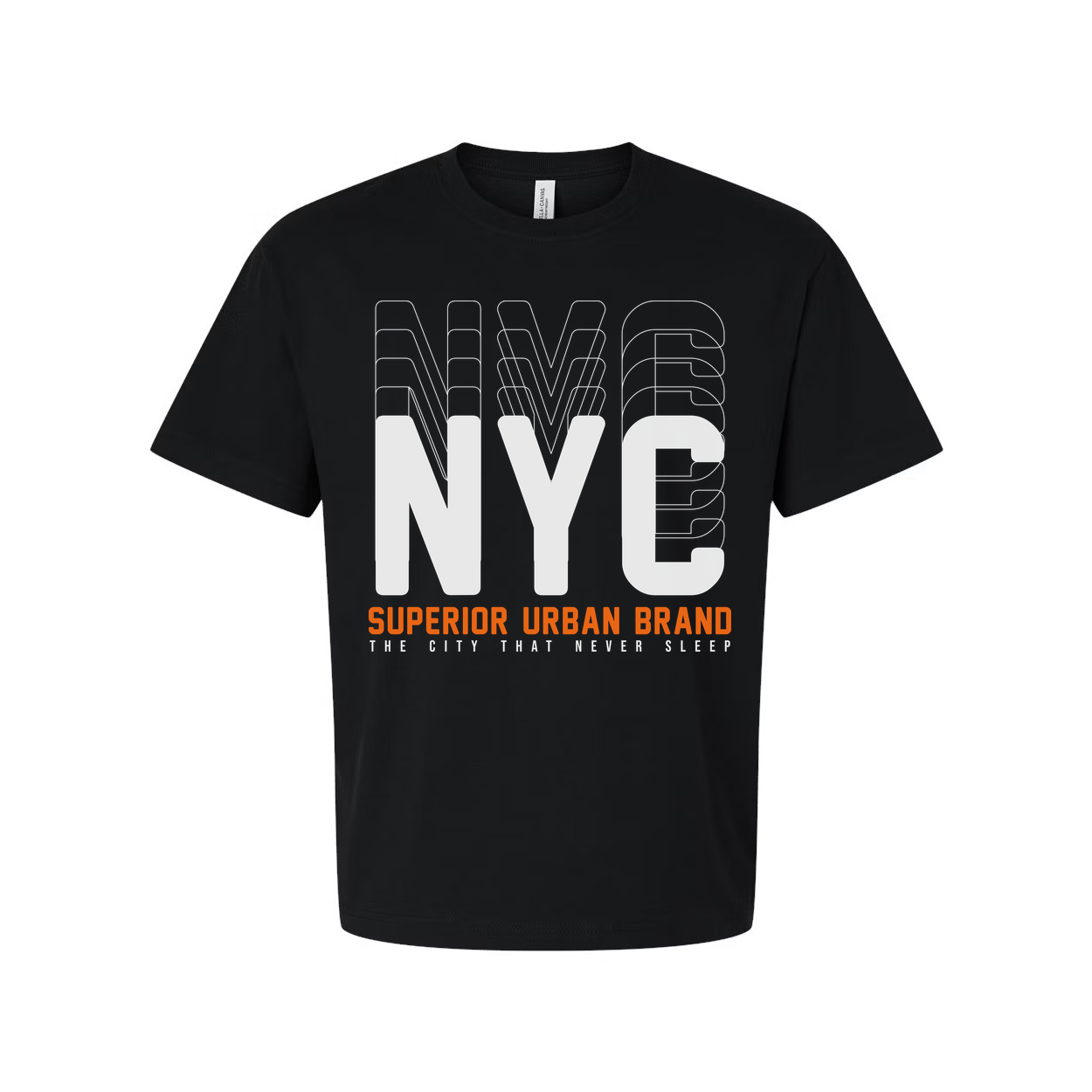 New York City Graphic Tee With Oversized NYC Letters And Orange Superior Urban Brand Text