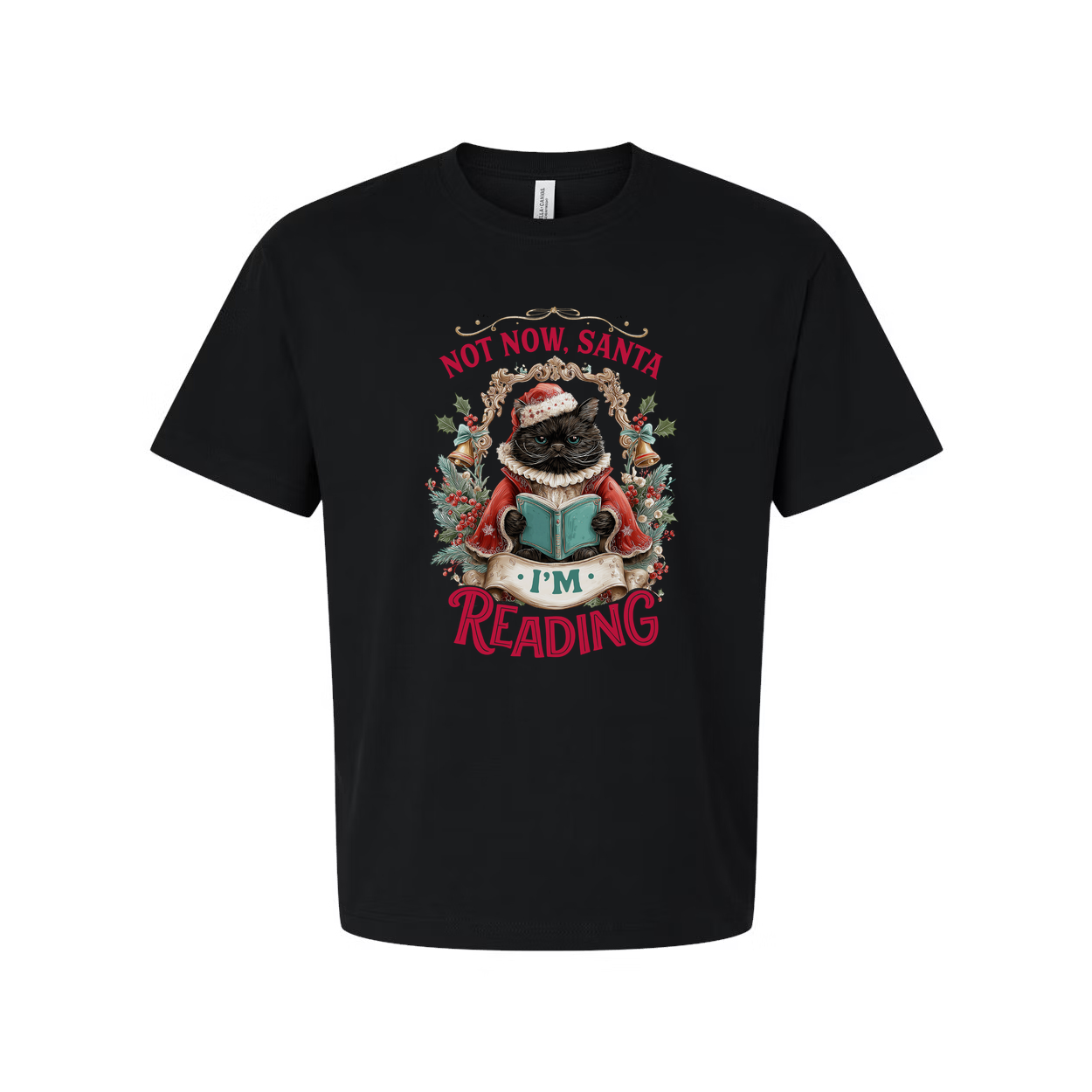 Not Now Santa I'm Reading Cat Christmas T Shirt Adorable Festive Graphic Tee for Cat Lovers