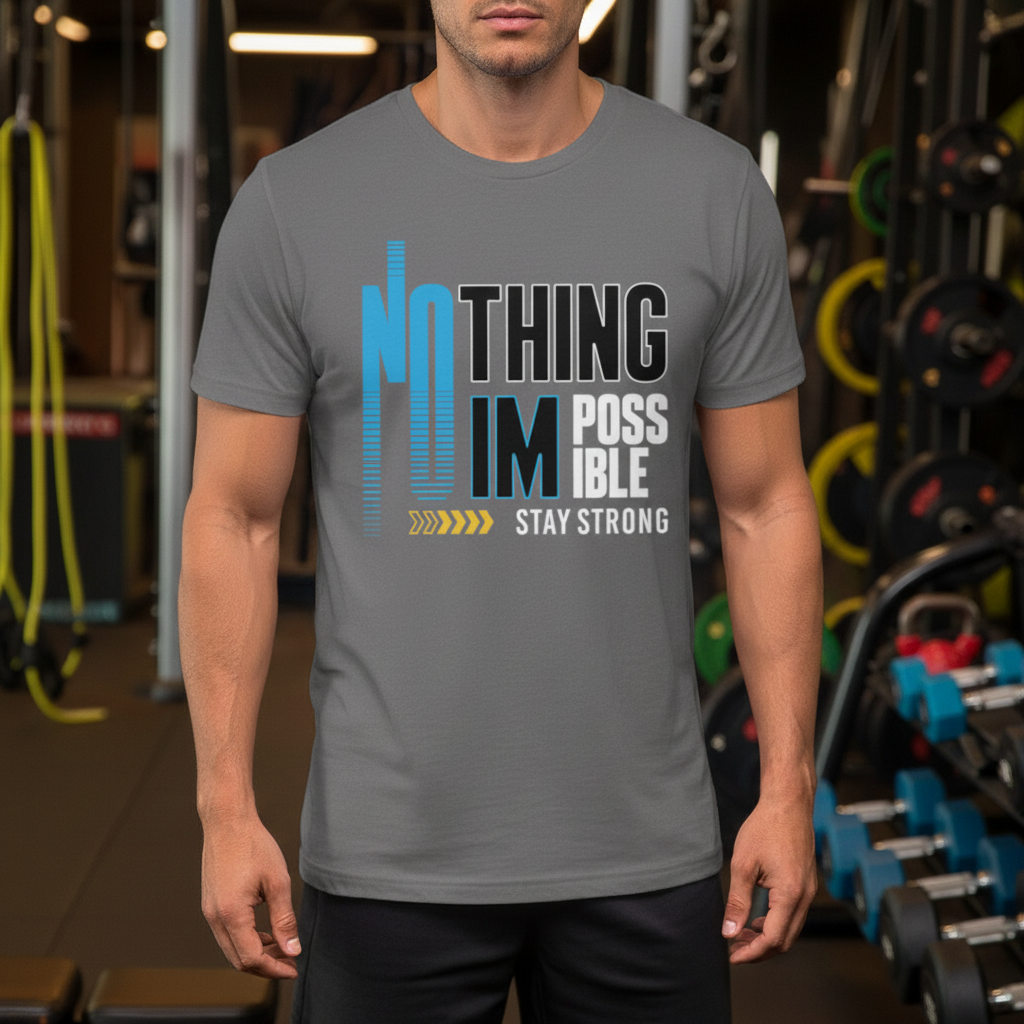 Nothing Is Impossible Stay Strong Unisex T Shirt Graphic Tee For Gym Workout Everyday Wear