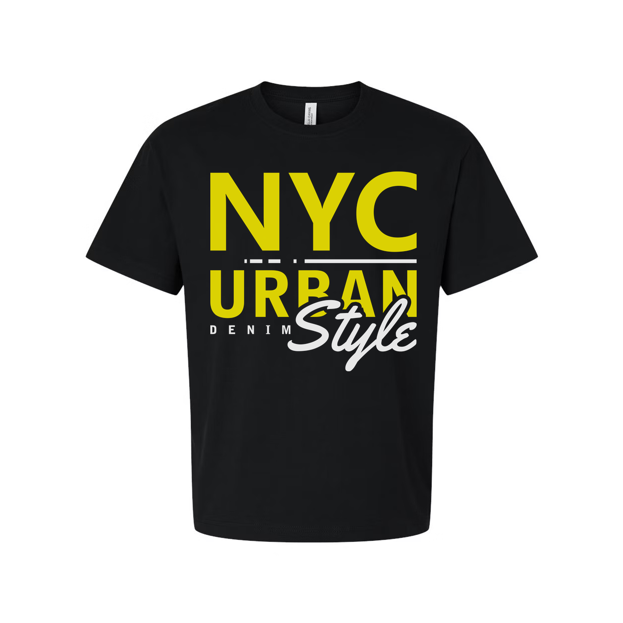 NYC Urban Style Graphic T Shirt Unisex Cotton With Denim Inspired Logo Design