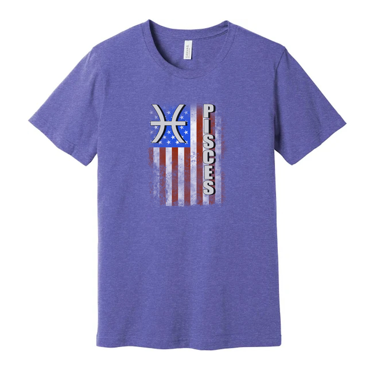 Pisces Zodiac Flag Graphic T Shirt Unisex Distressed American Flag Design Graphic Tee