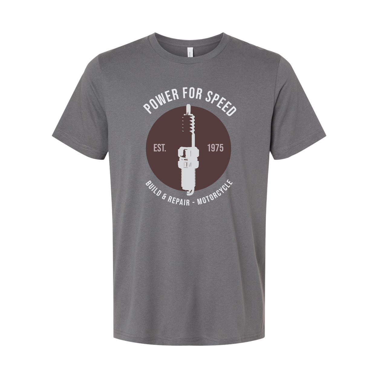 Power For Speed Motorcycle Emblem Unisex T Shirt With Spark Plug Circle Design Est. 1975