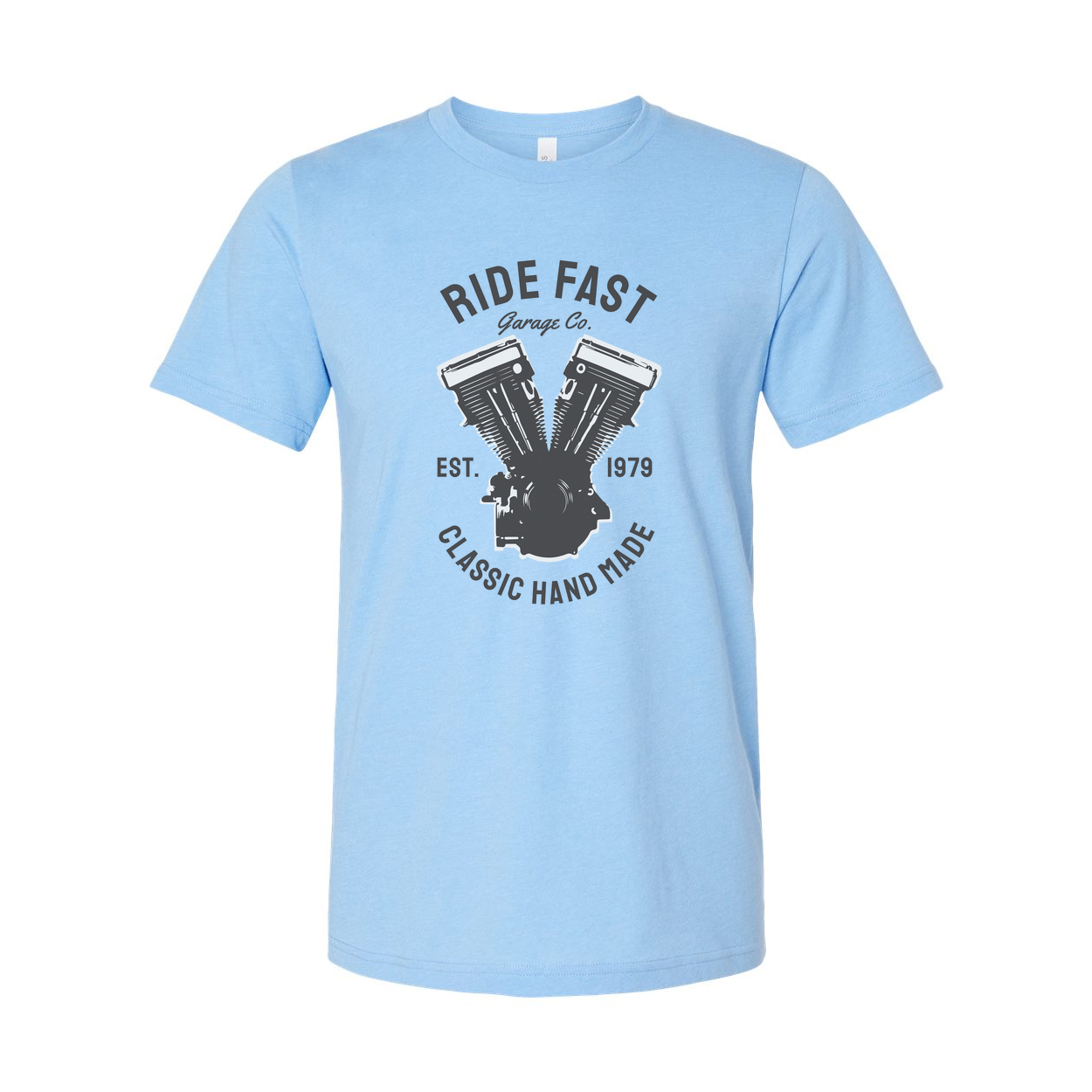 Ride Fast Garage Co V Twin Engine Graphic T Shirt Unisex Motorcycle Enthusiasts Est 1979 Classic Hand Made