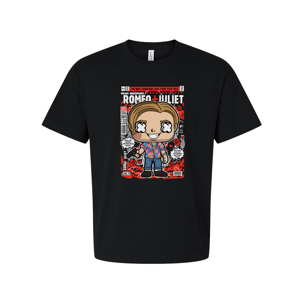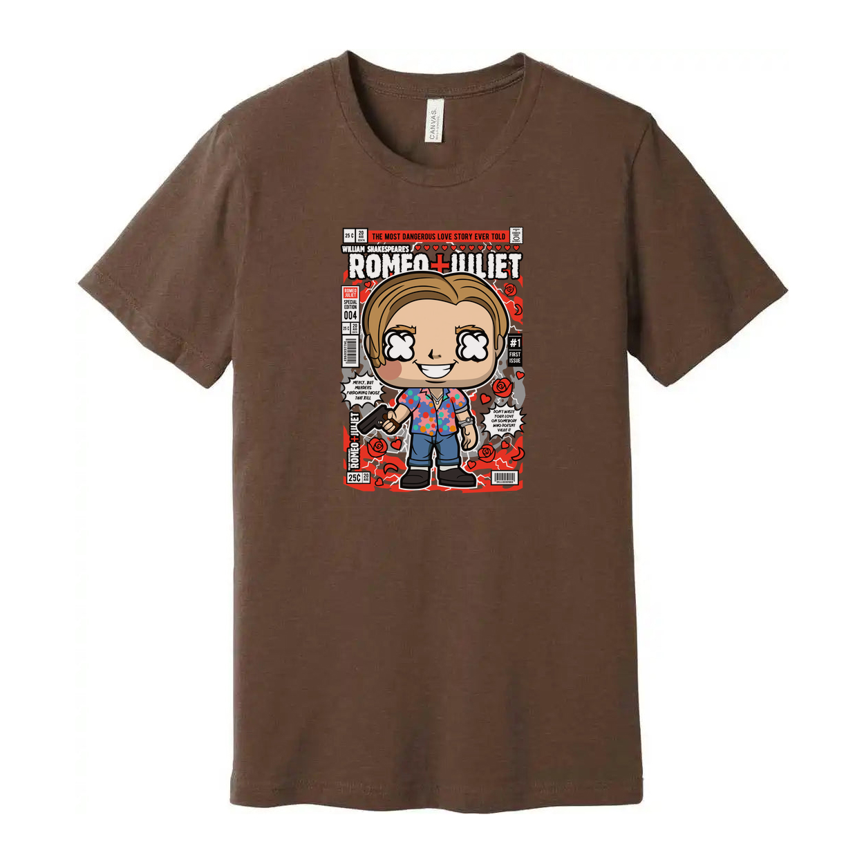 Romeo And Juliet Pop Art Cartoon Graphic Tee With Comic Book Panel Design For Unisex Adults