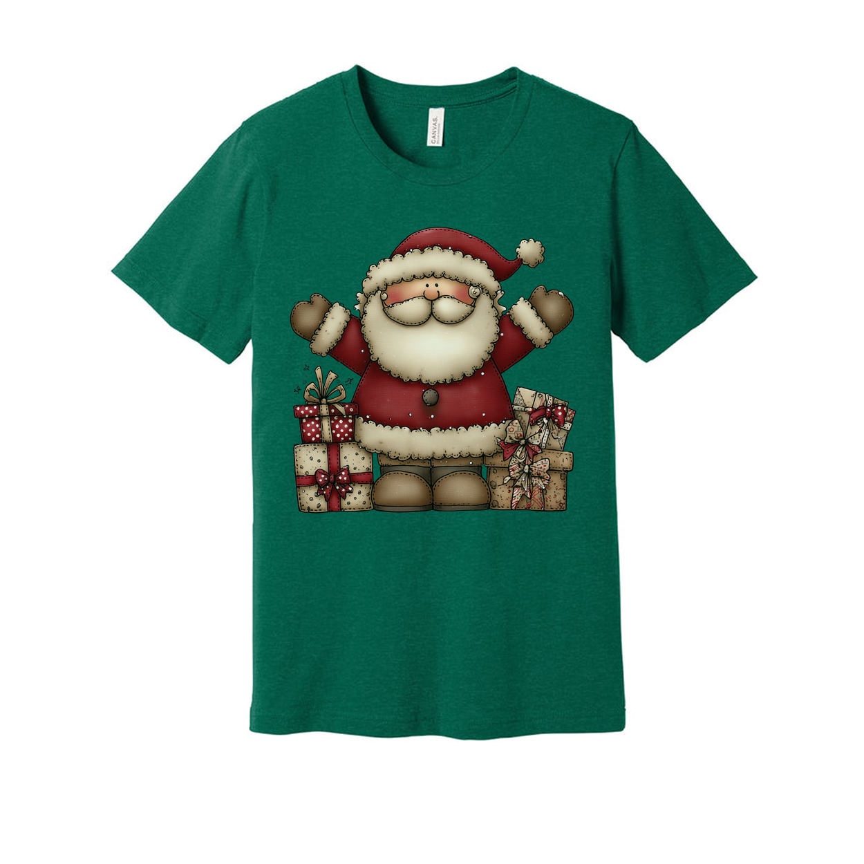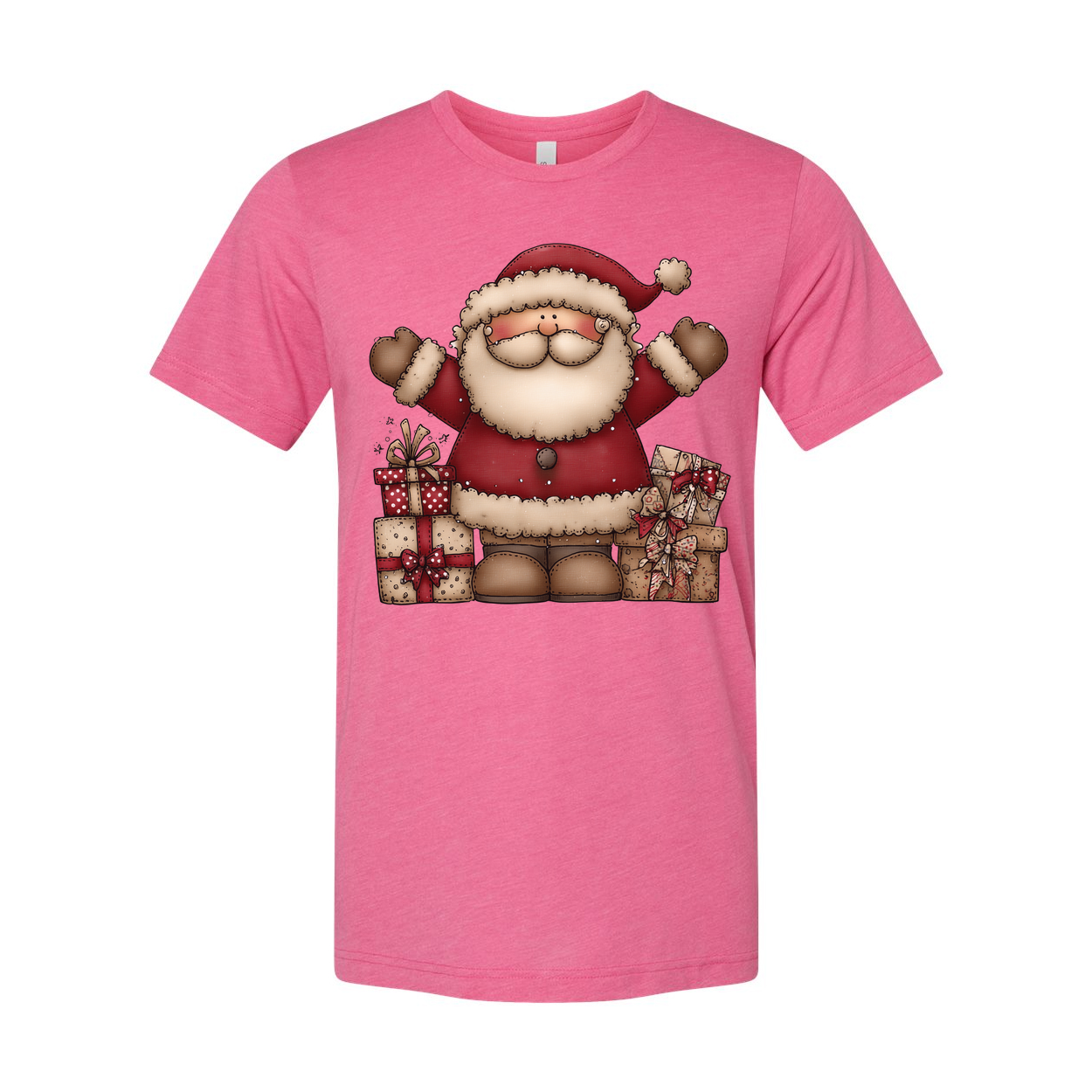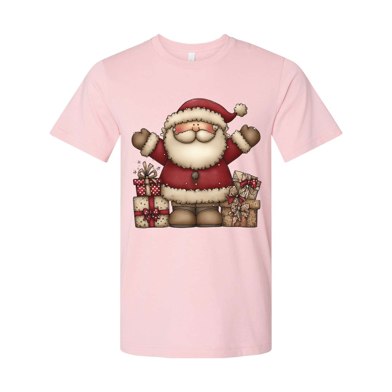 Santa Claus Christmas T Shirt For Unisex Wear With Gift Boxes Design Colorful Artwork