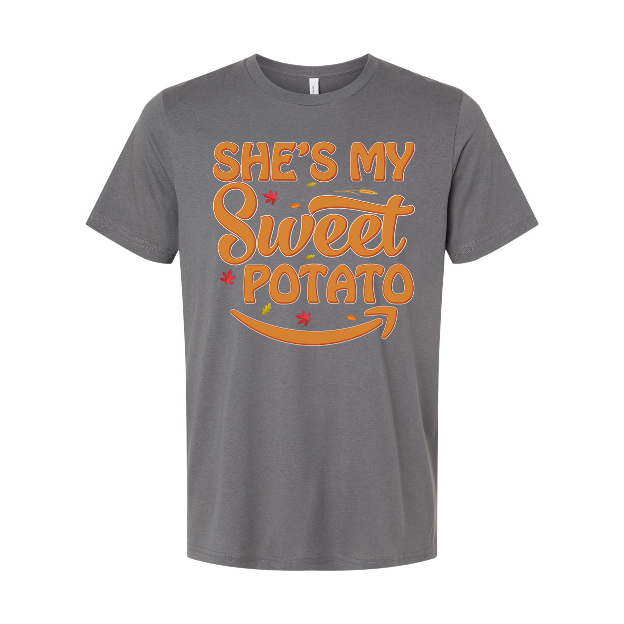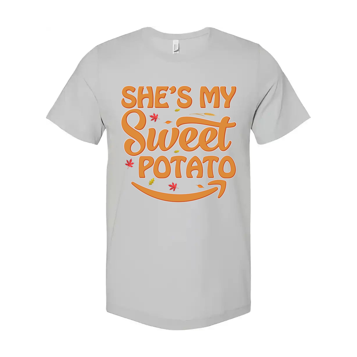 She's My Sweet Potato Thanksgiving Unisex Graphic T Shirt With Fall Leaves Design