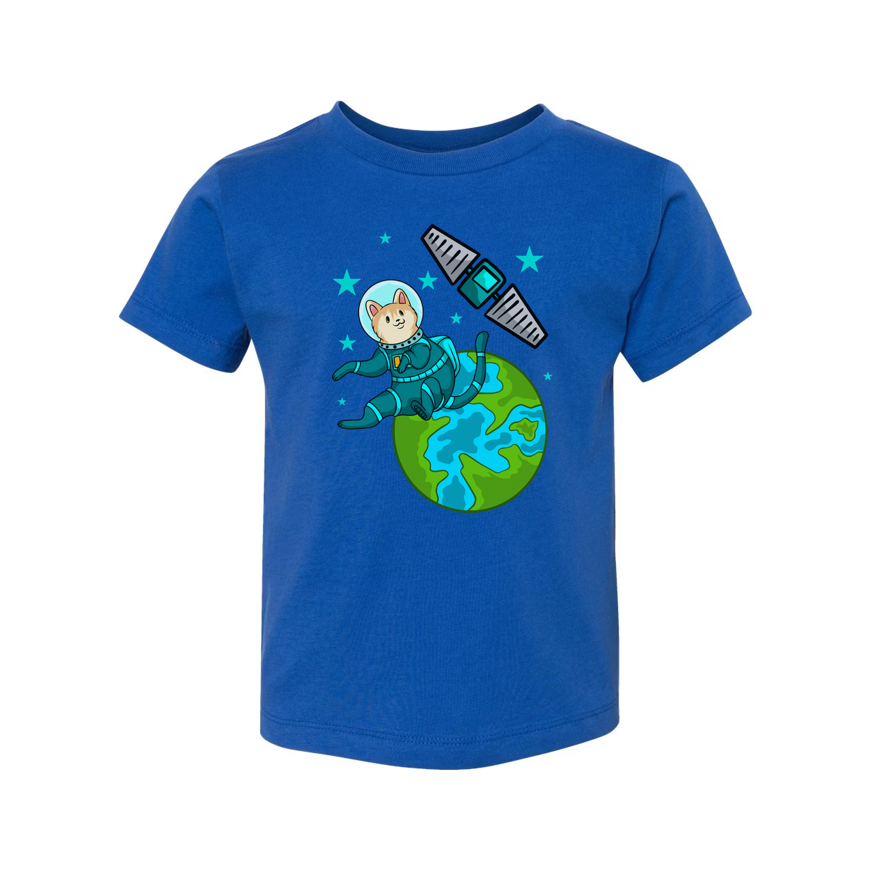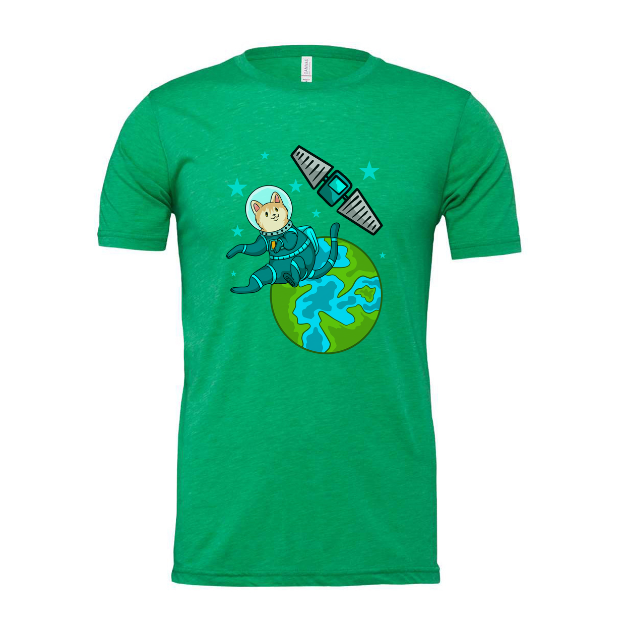Space Animals Cat Astronaut Floating Over Earth Graphic On Unisex T Shirt For Space Lovers