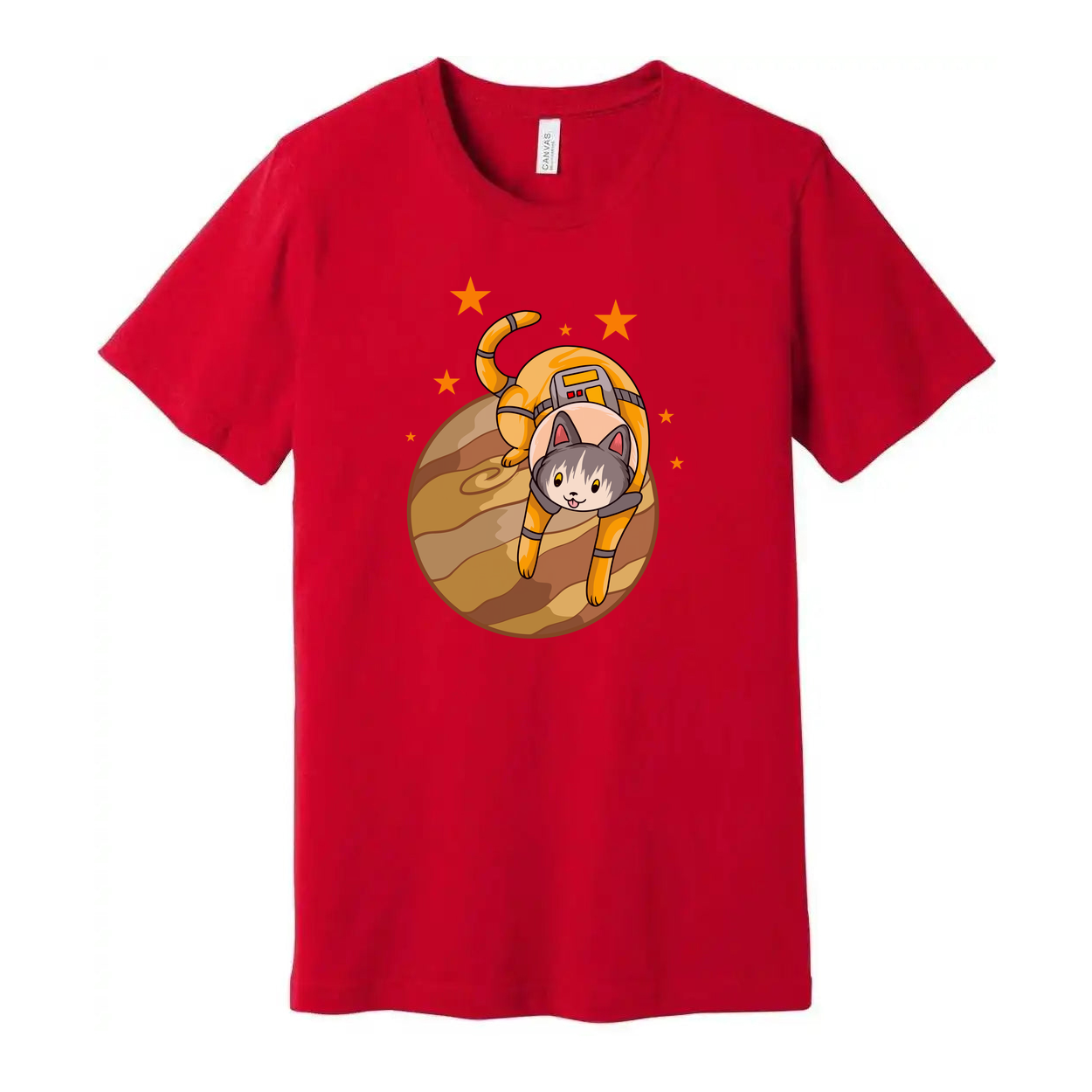 Space Cat Astronaut Illustration On Planet Unisex T Shirt With Adventure Theme Playful Design
