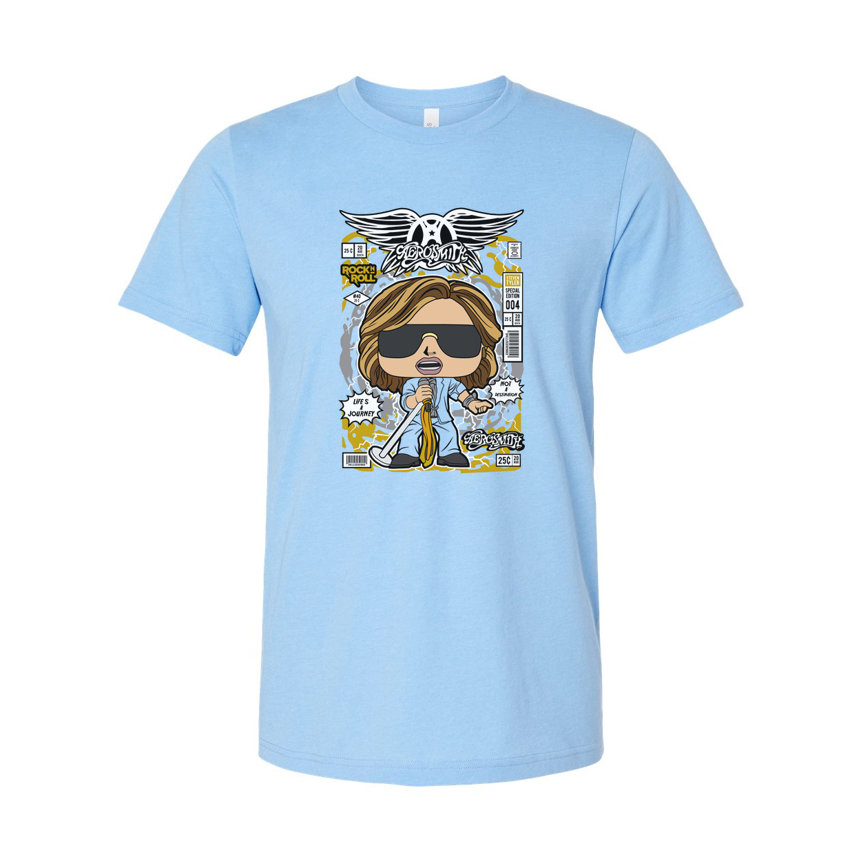 Steven Tyler Aerosmith Cartoon Graphic T Shirt For Unisex Wearers With Bold Retro Design