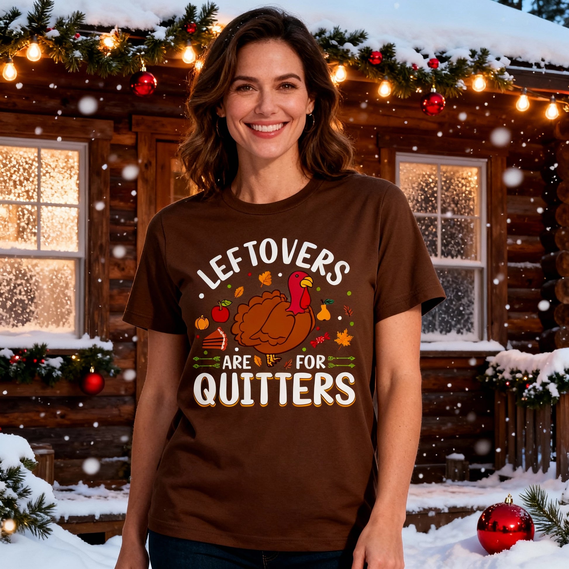 Thanksgiving Unisex T Shirt With Turkey Graphic Leftovers Are For Quitters Design Tee