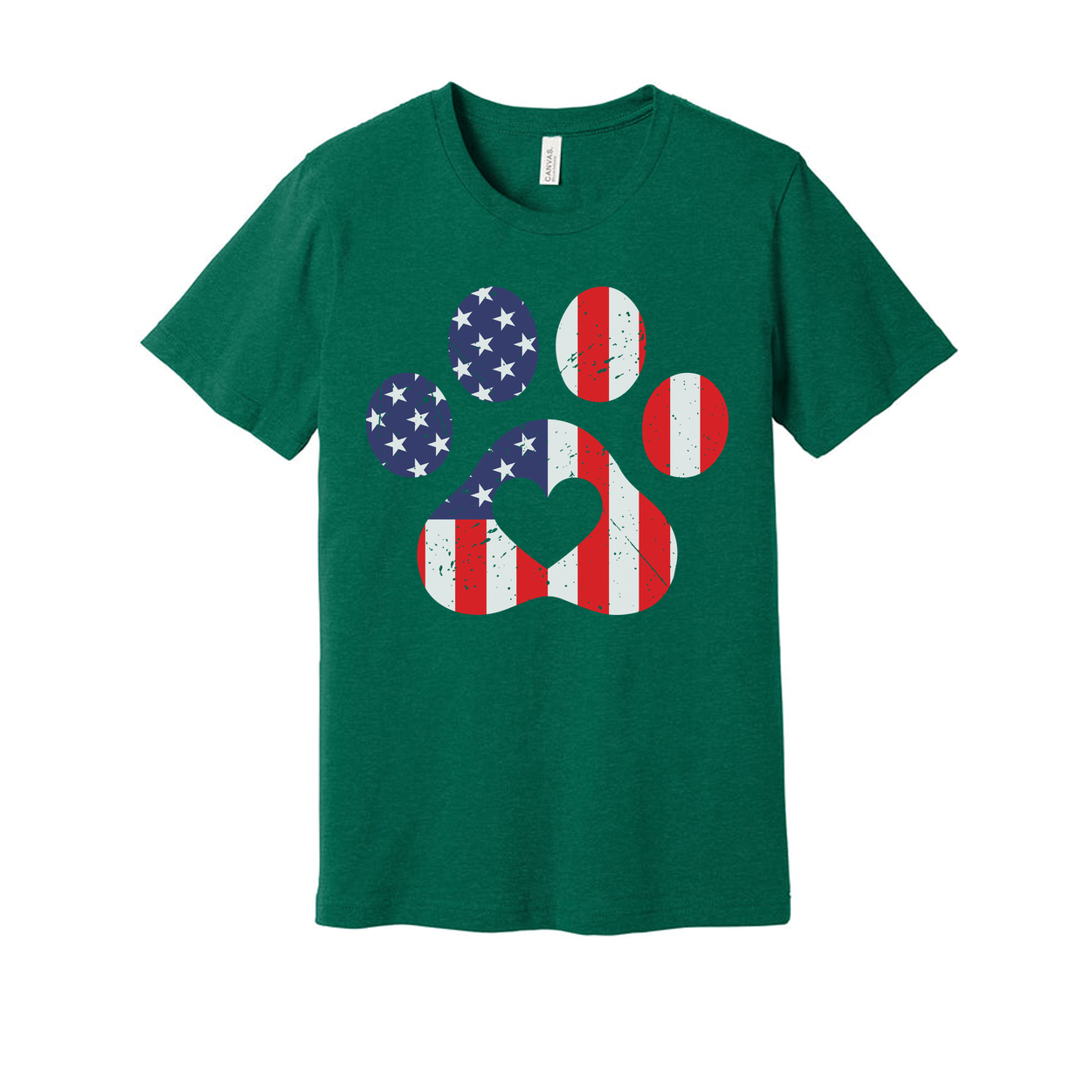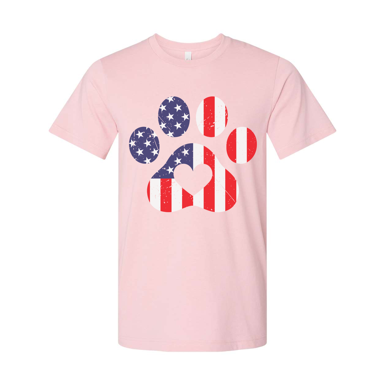 Unisex American Flag Paw Print T Shirt With Stars Stripes Pattern And Patriotic Design