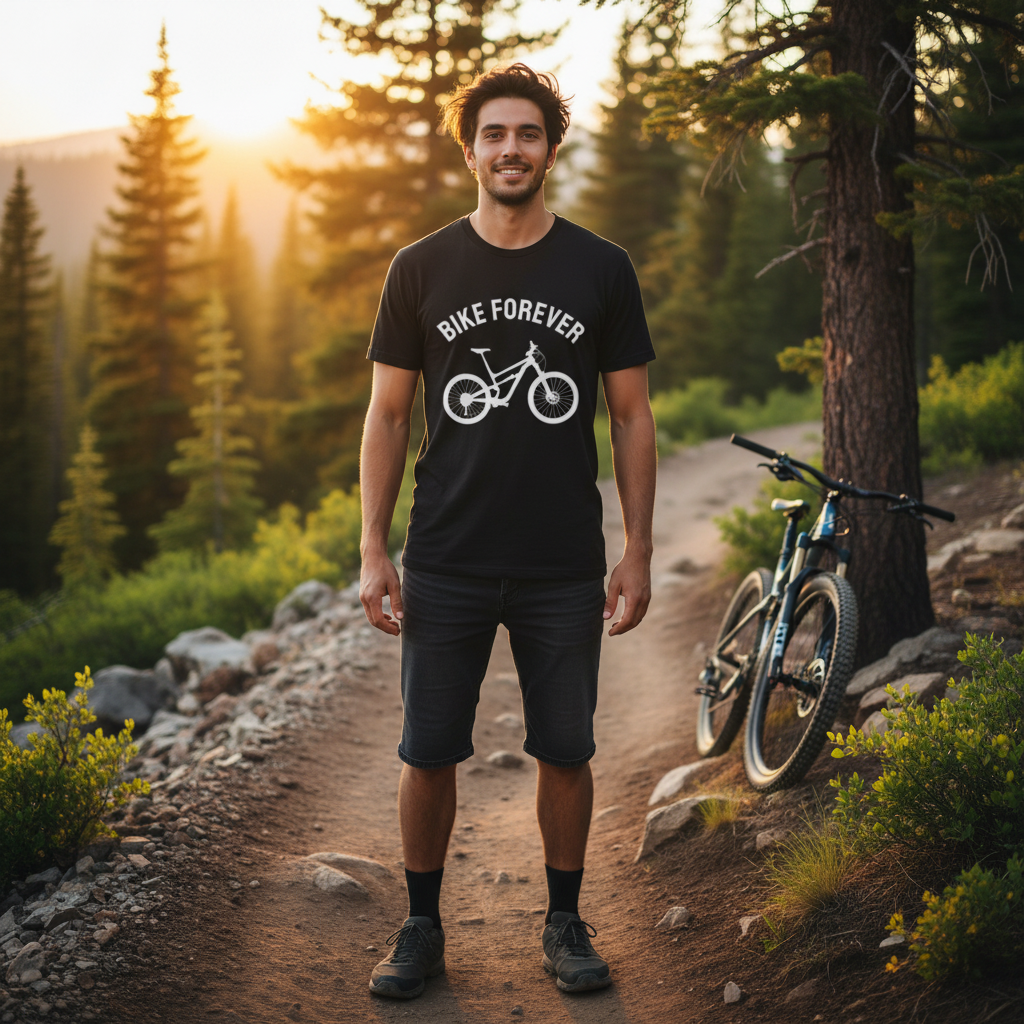 Unisex Bike Forever Graphic T Shirt With Bicycle Silhouette For Casual Everyday Wear