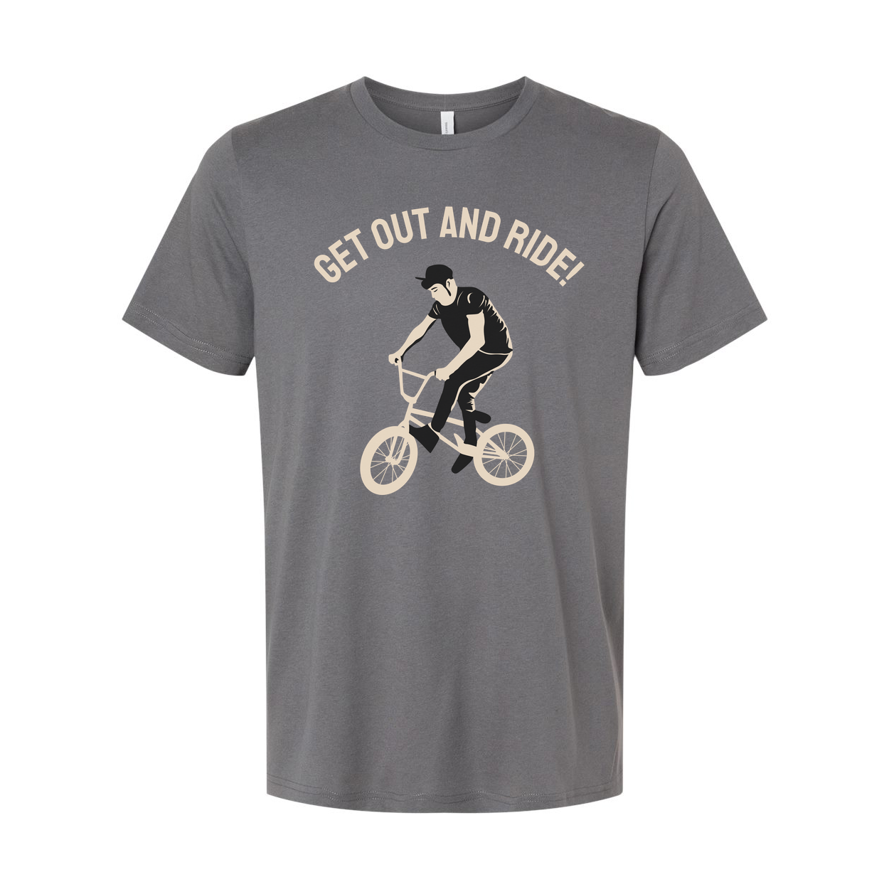 Unisex BMX Rider Graphic Tee For Cyclists With Get Out And Ride Slogan Artwork Bold Design
