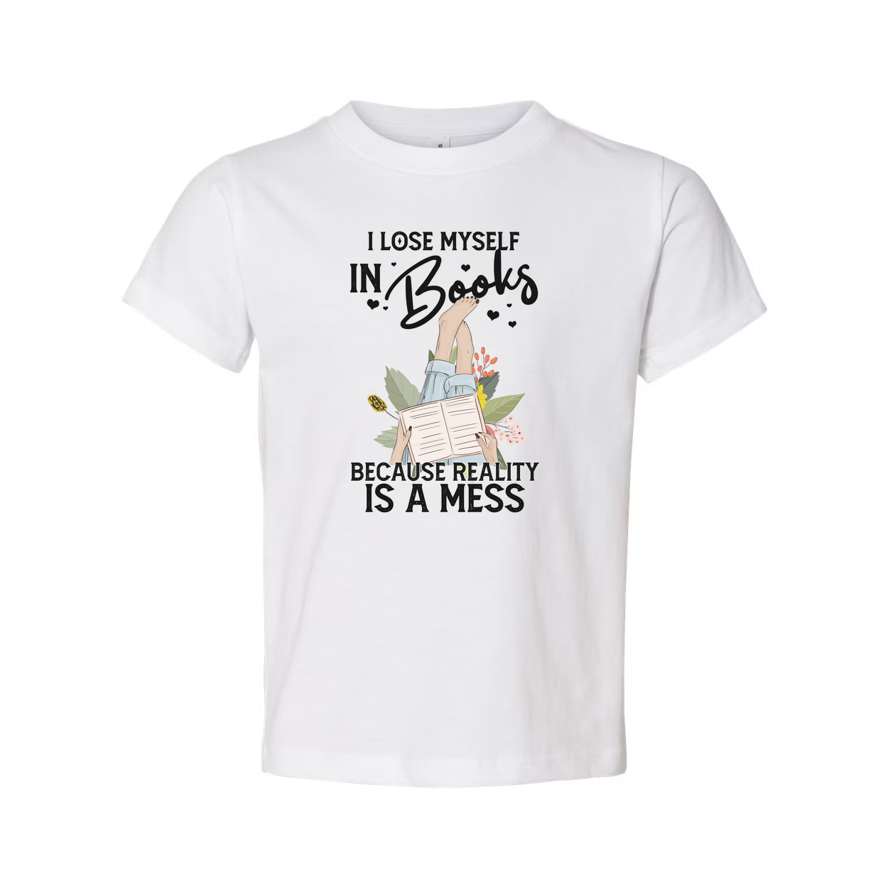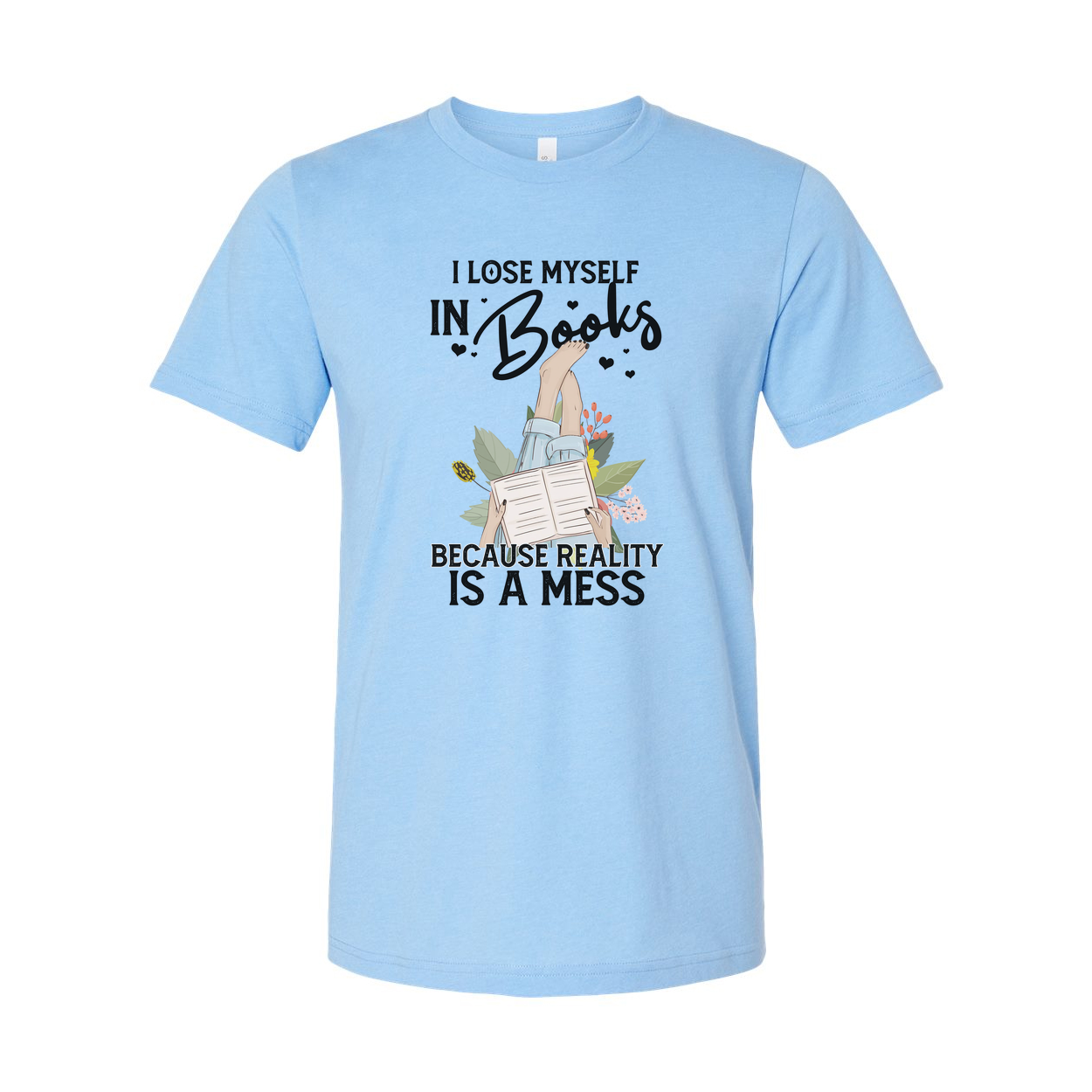 Unisex Book Lover T Shirt With Quote I Lose Myself In Books Because Reality Is A Mess